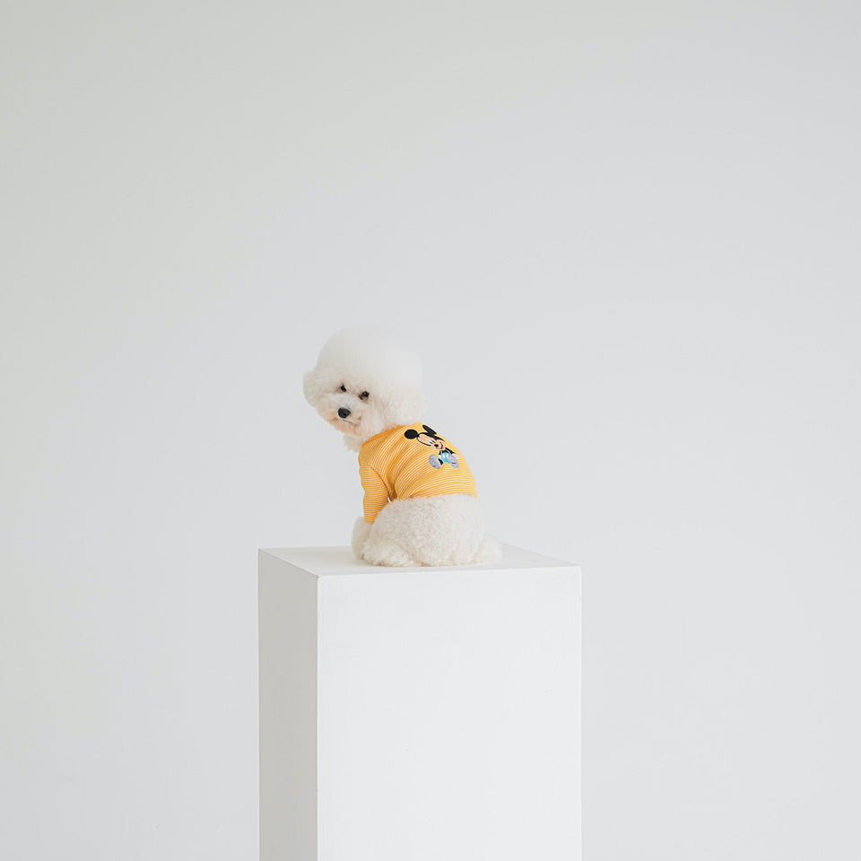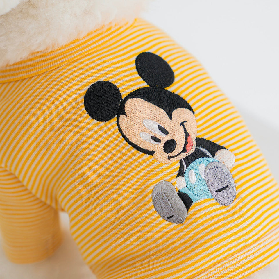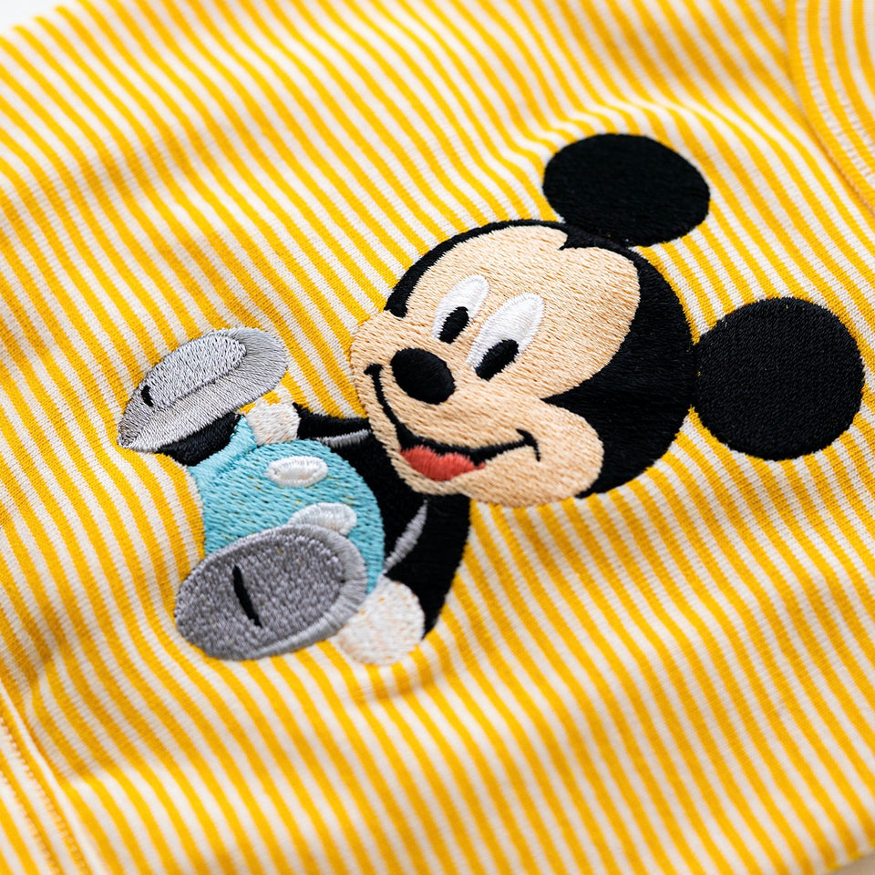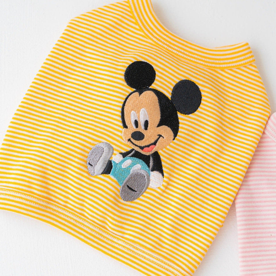 細いピッチのボーダーに刺繍で描かれた可愛いミッキーがポイント!