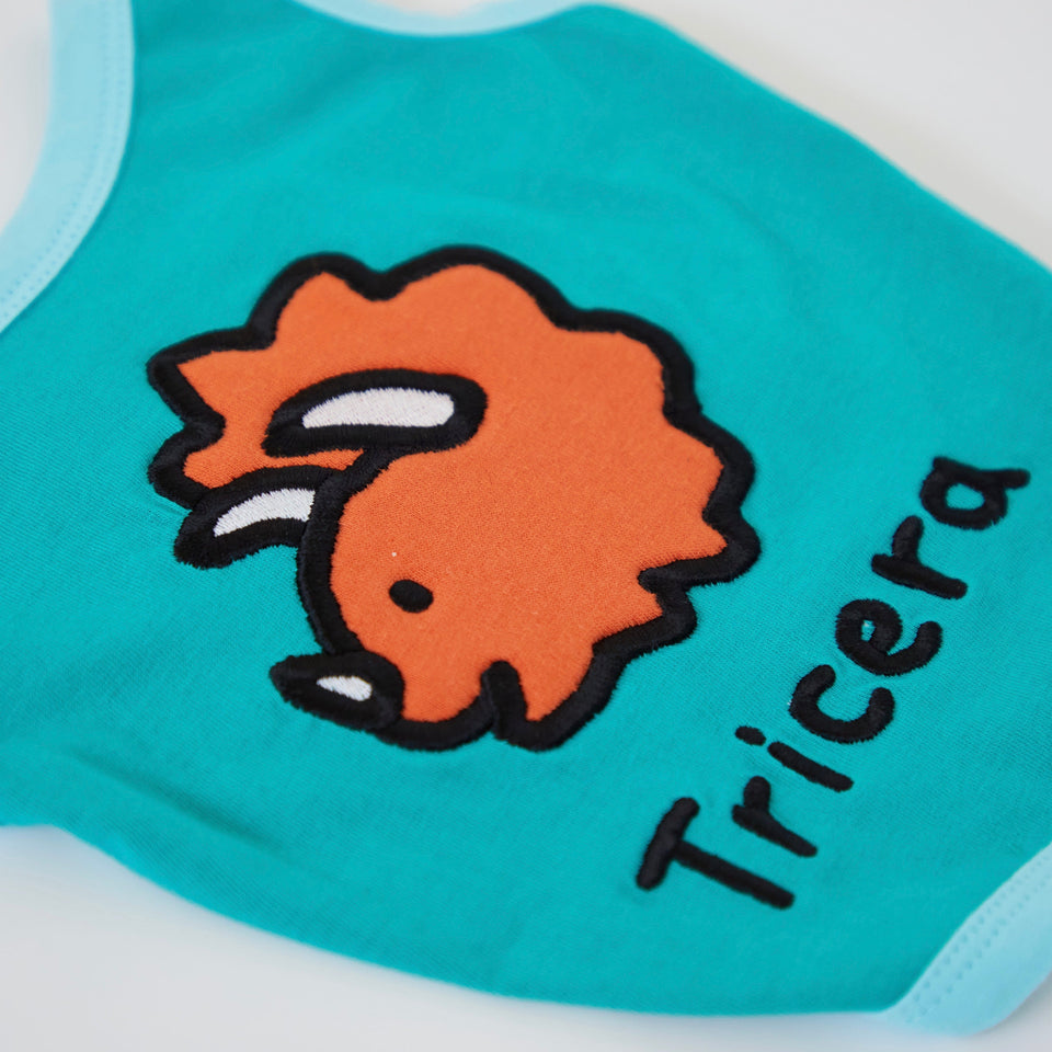 コットン100%のさらっとしたスリーブレスに恐竜のキャラクターが大きくプリントされており、可愛く配色も素敵です♡