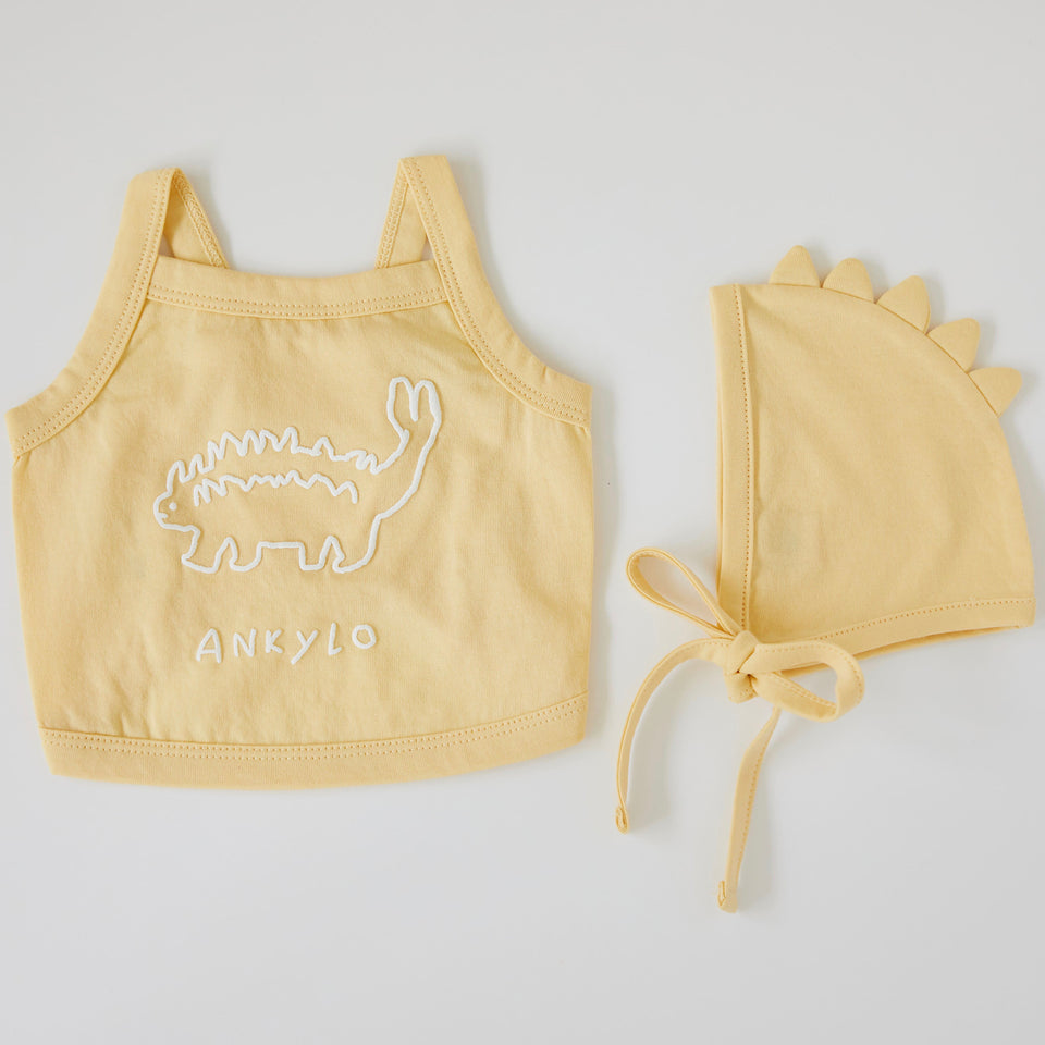 コットン100%のさらっとしたスリーブレスに恐竜のキャラクター「Ankylo」がプリントされています!