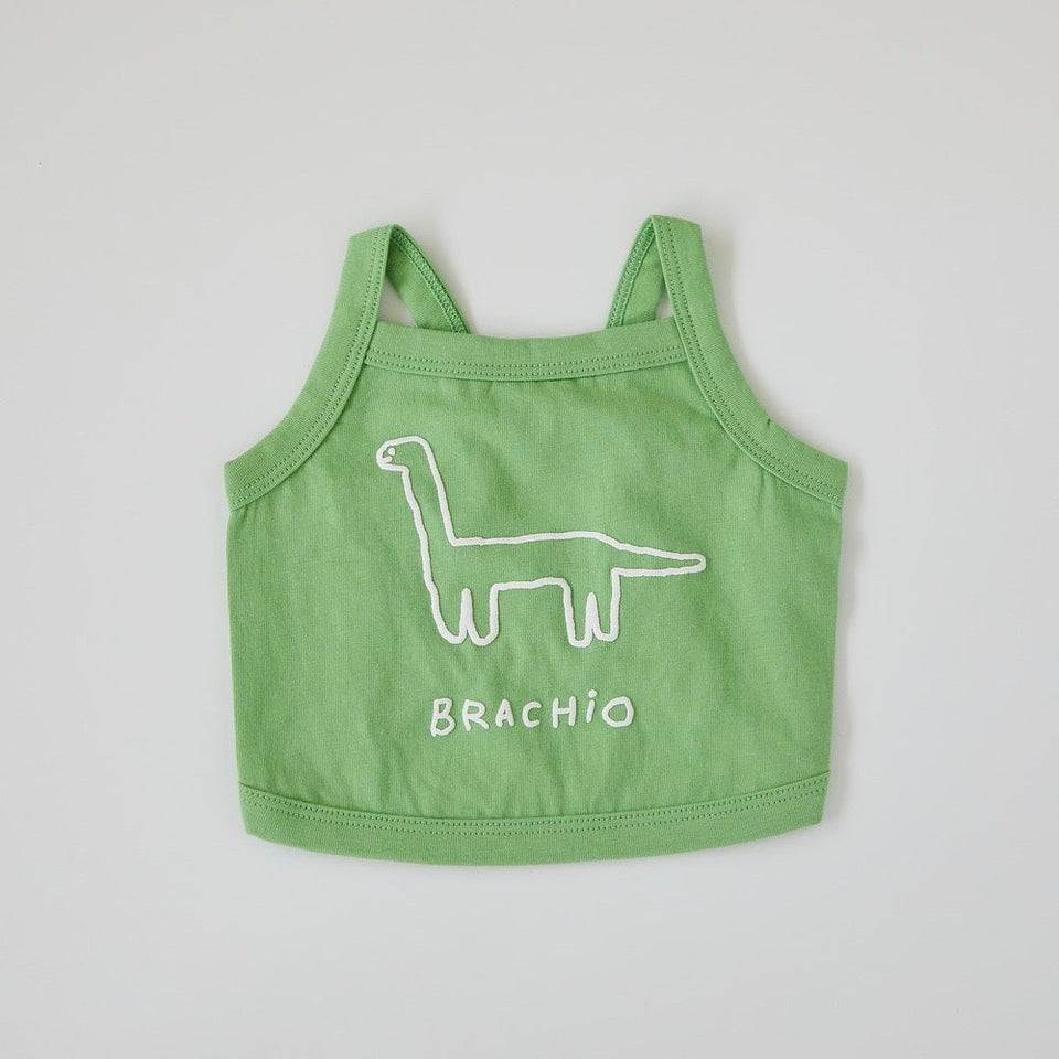 コットン100%のさらっとしたスリーブレスに恐竜のキャラクター「Brachio」がプリントされています!