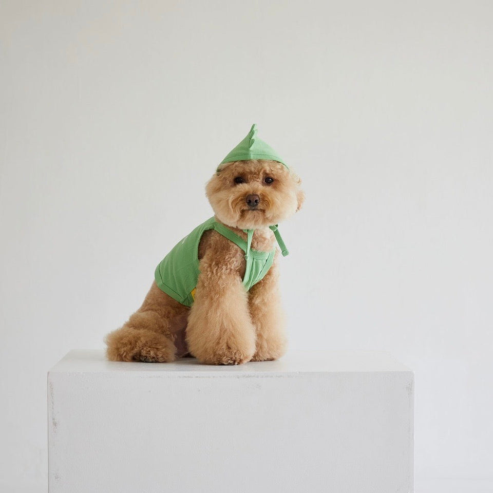 「慈悲深く残酷な草食動物クラブ」のメンバーとして集まった恐竜たちの平凡だが、特別な毎日を過ごす様子を描いた"jogumanstudio"の代表作「下品な恐竜たち」シリーズの可愛いキャラクターがプリントされたスリーブレスとボンネットのセットです。