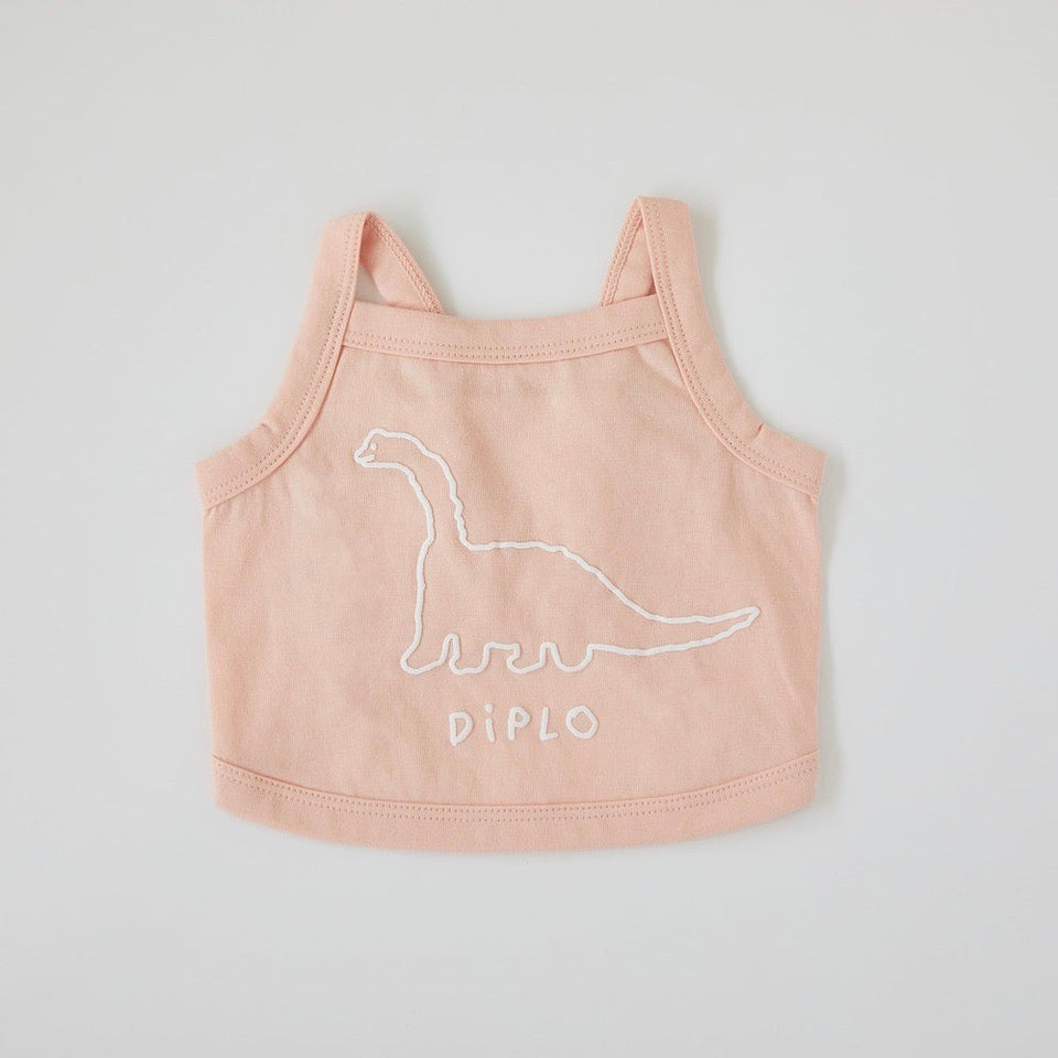 コットン100%のさらっとしたスリーブレスに恐竜のキャラクター「Diplo」がプリントされています!