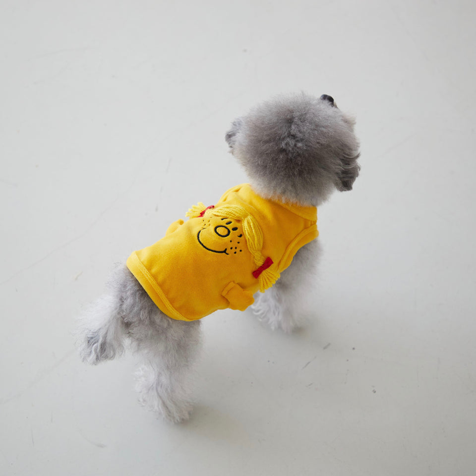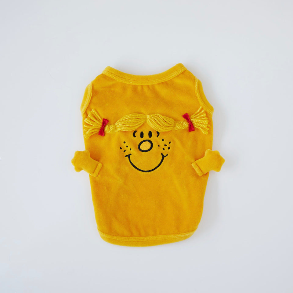 『ベロア生地にMr. Men Little Missの可愛いキャラクターたちが刺繍され、立体的な手がキャッチーなスリーブレス』