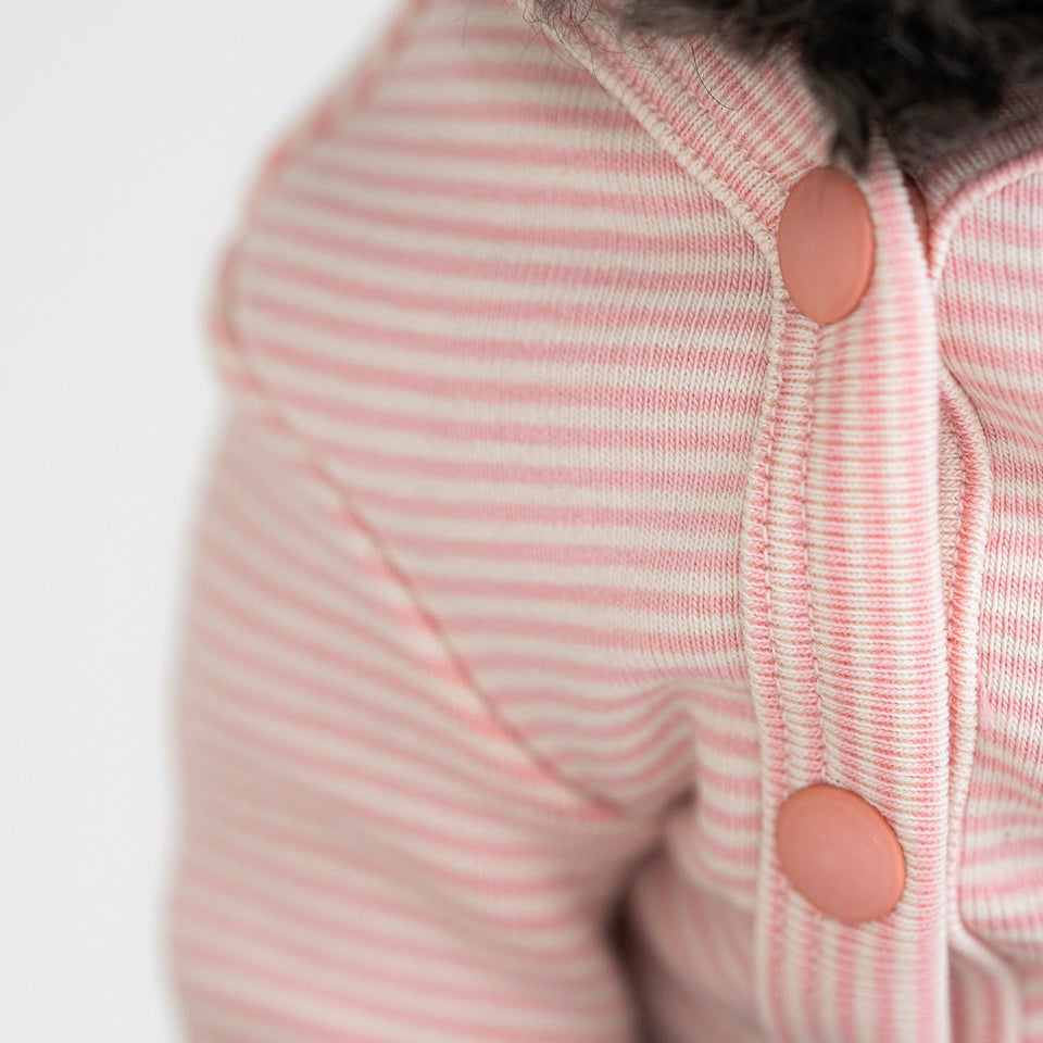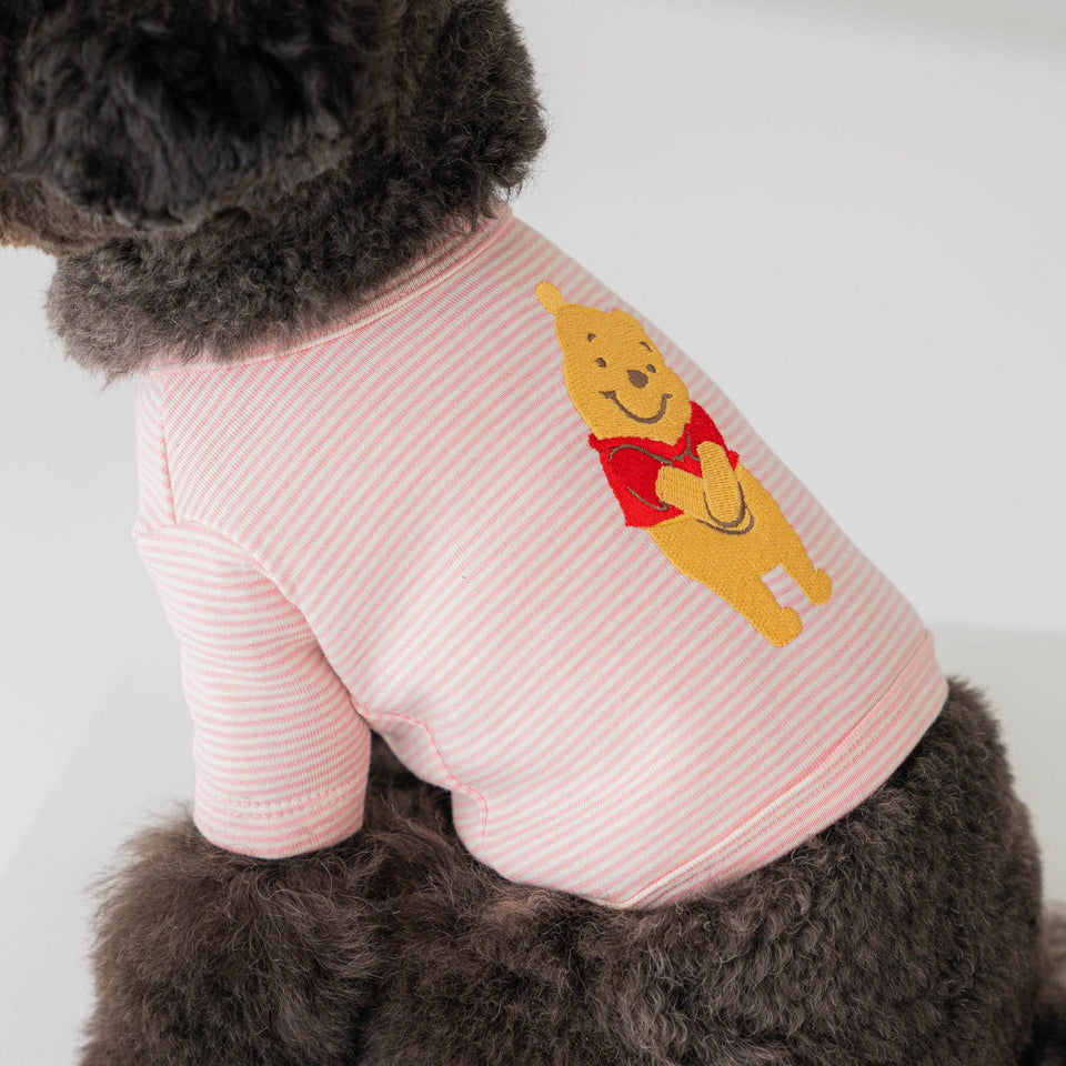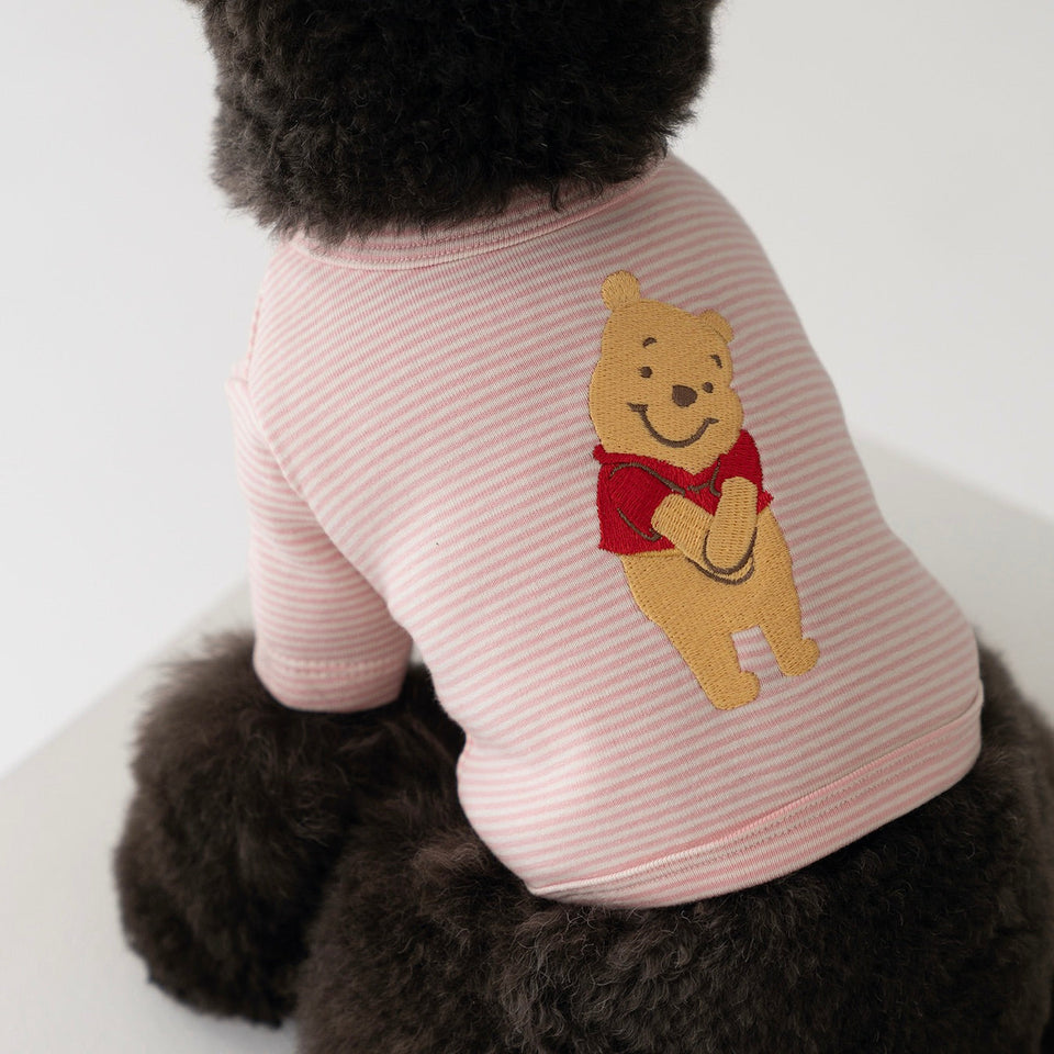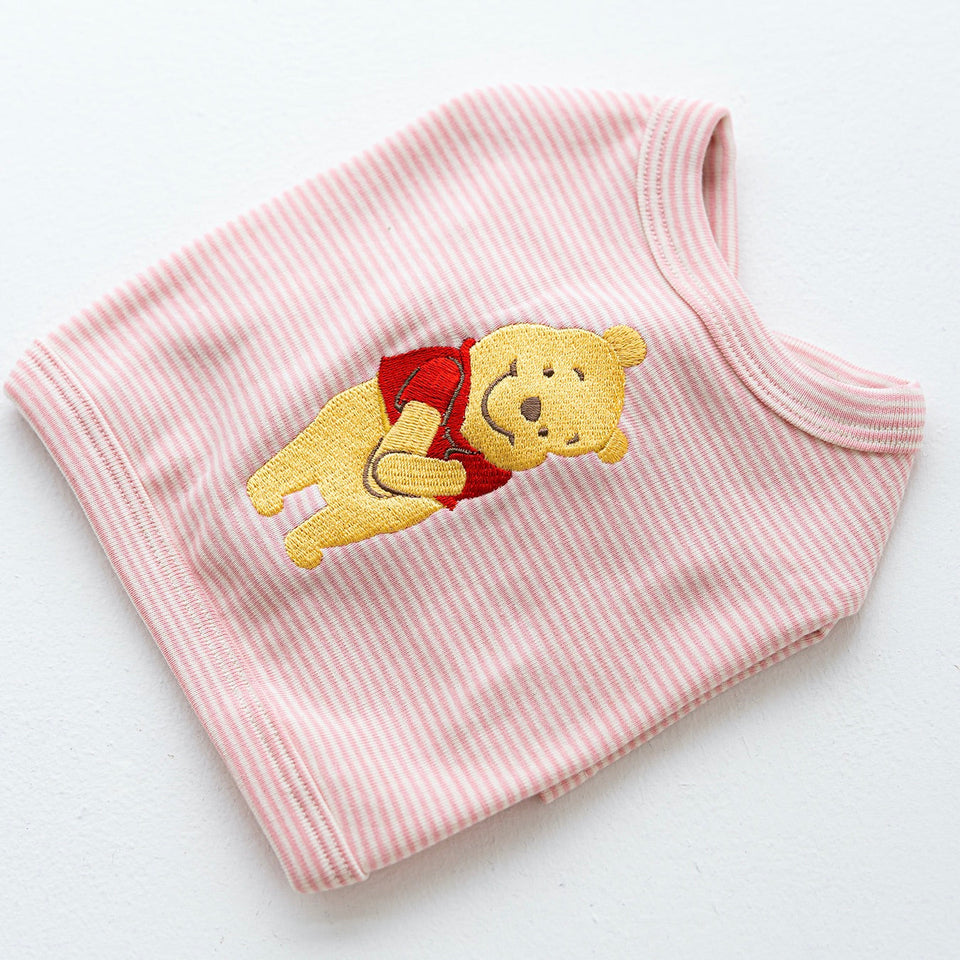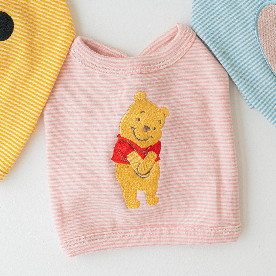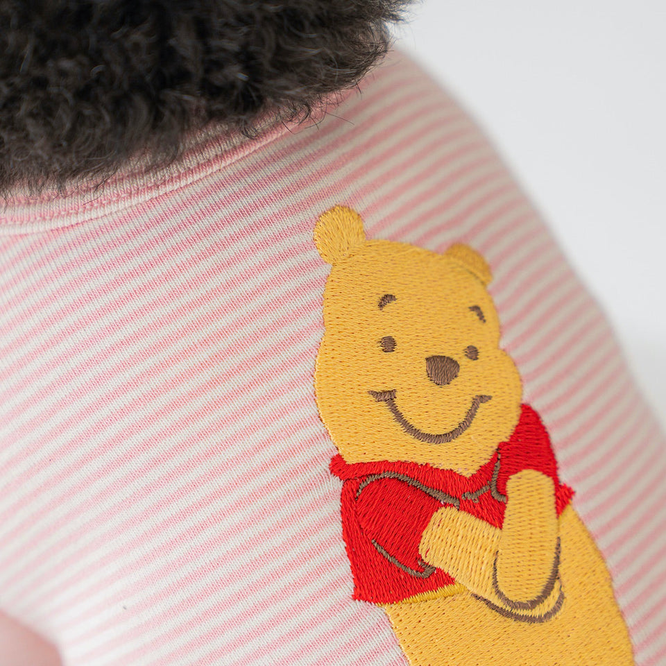 細いピッチのボーダーに刺繍で描かれた可愛いプーさんがポイント!