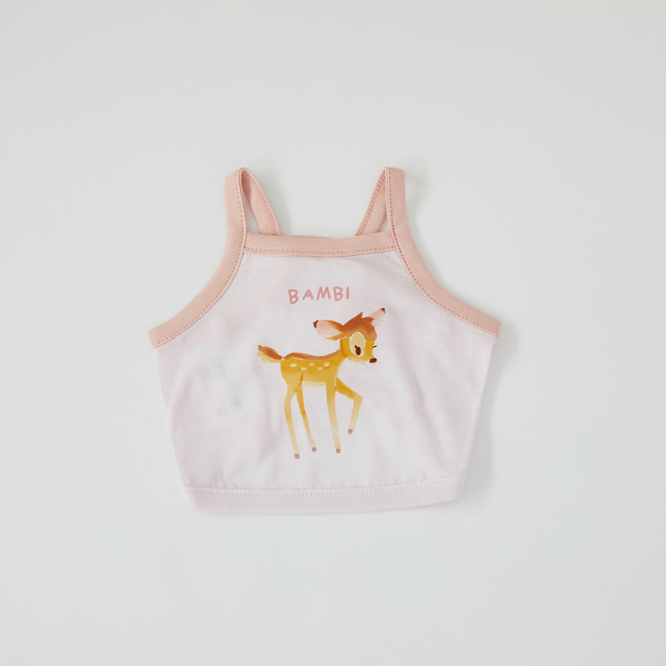 世界中で大人気Disneyのキャラクターが水彩画プリントになったバンビのショートトップスです。