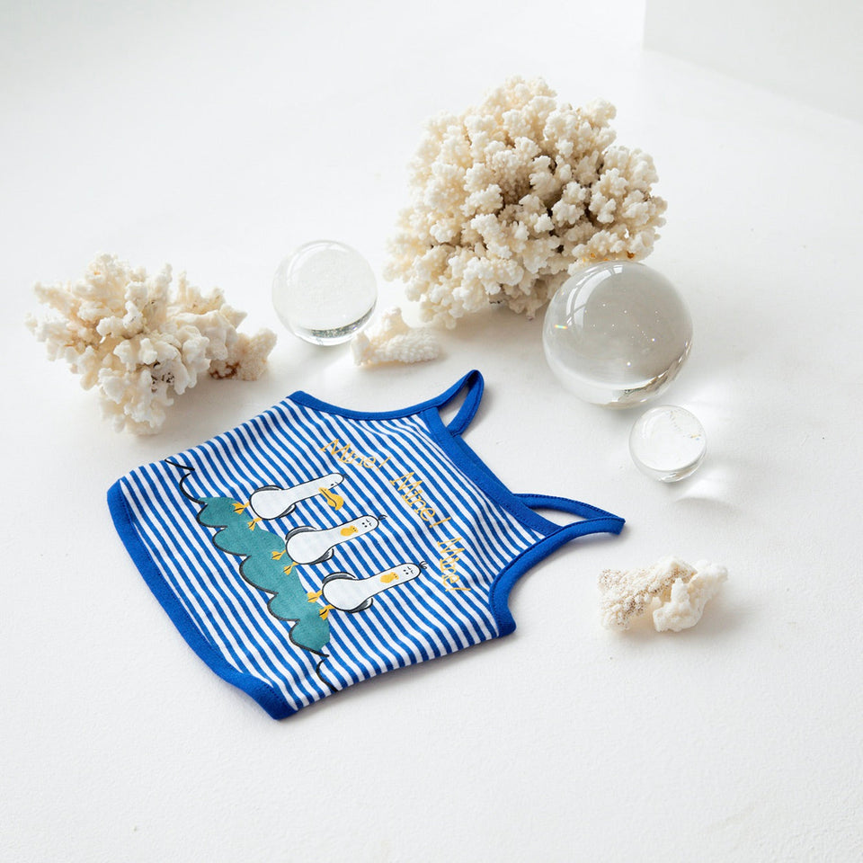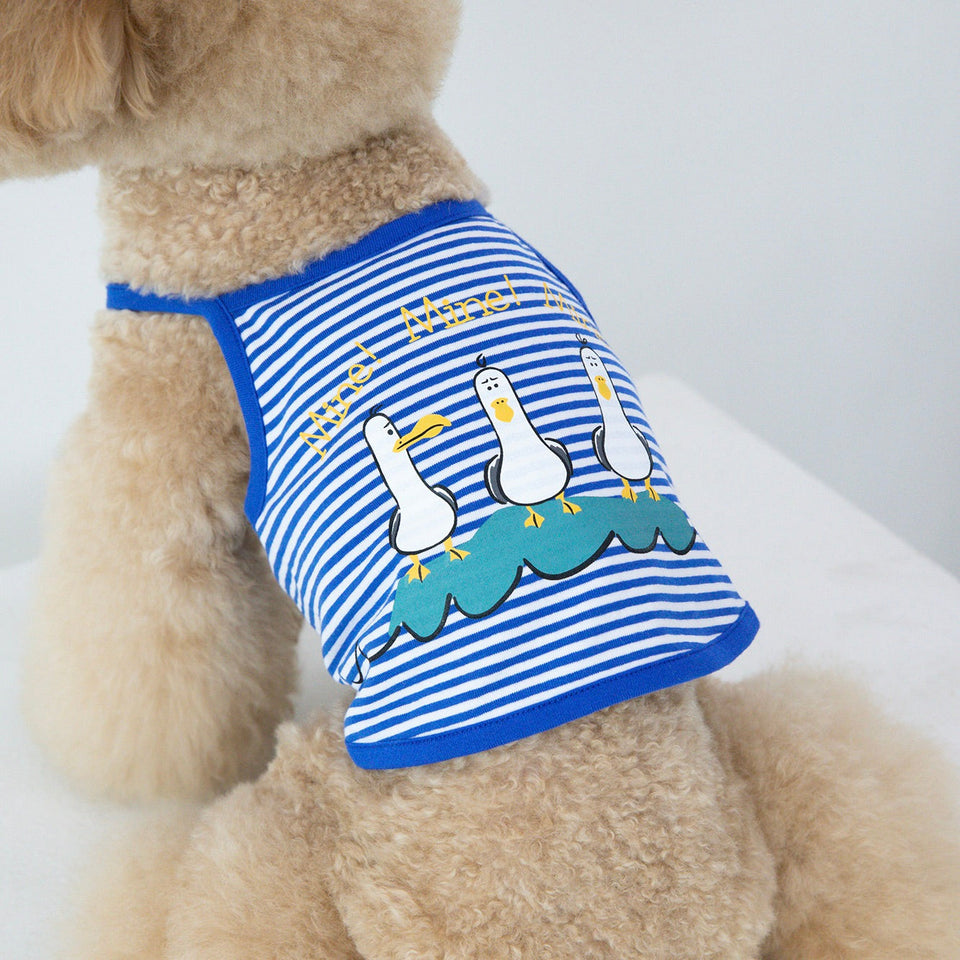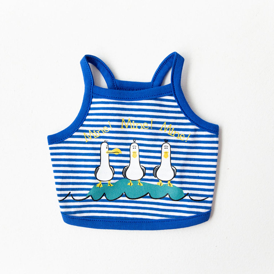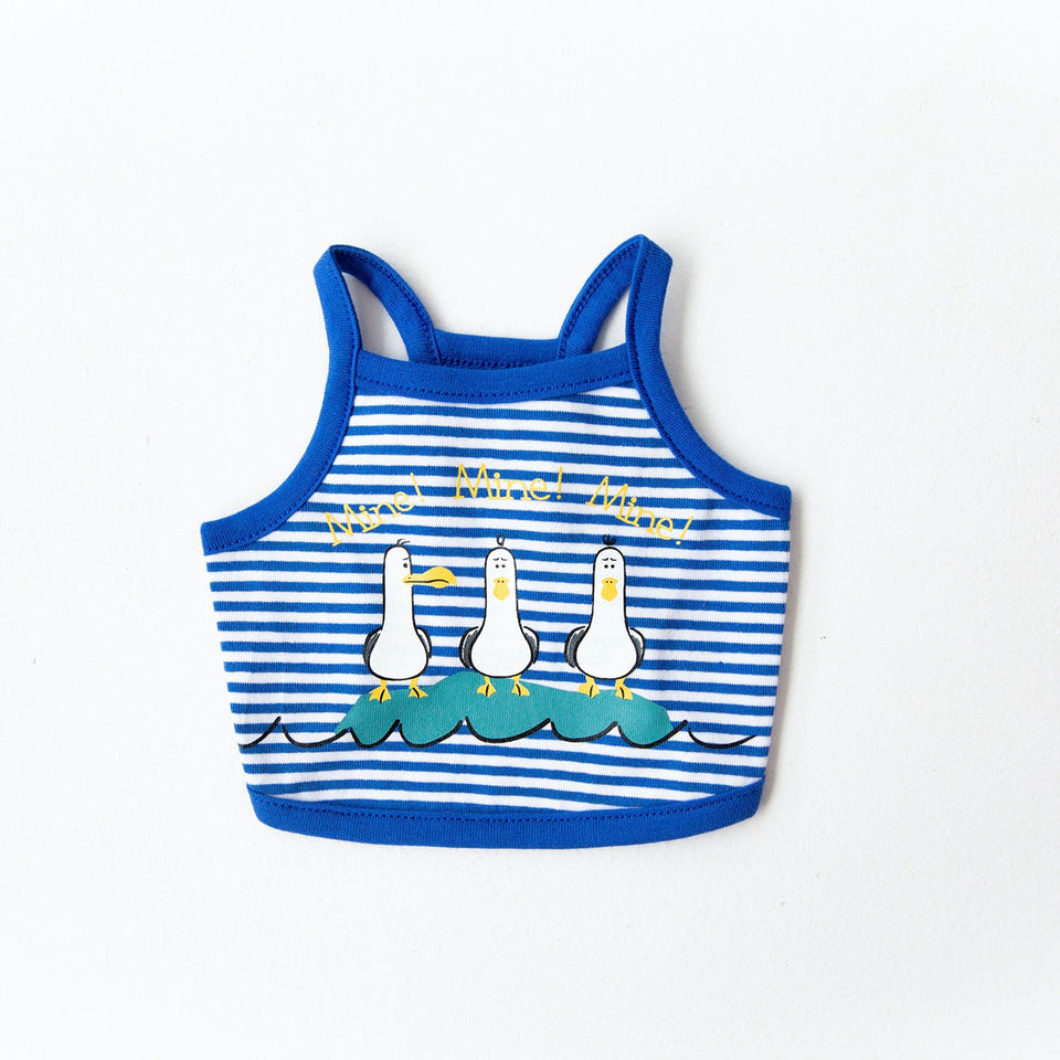 細めのボーダーと細めのストラップにカモメの可愛いキャラクターのプリントが夏らしく爽やかな印象のトップス!
