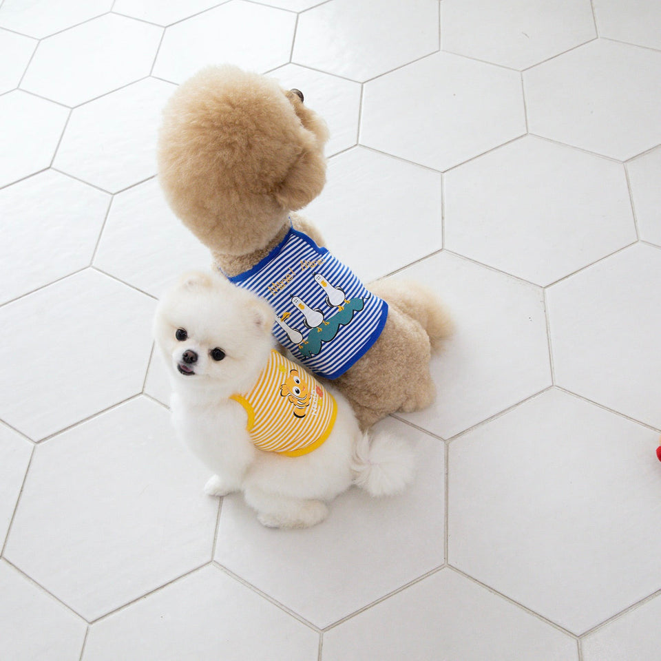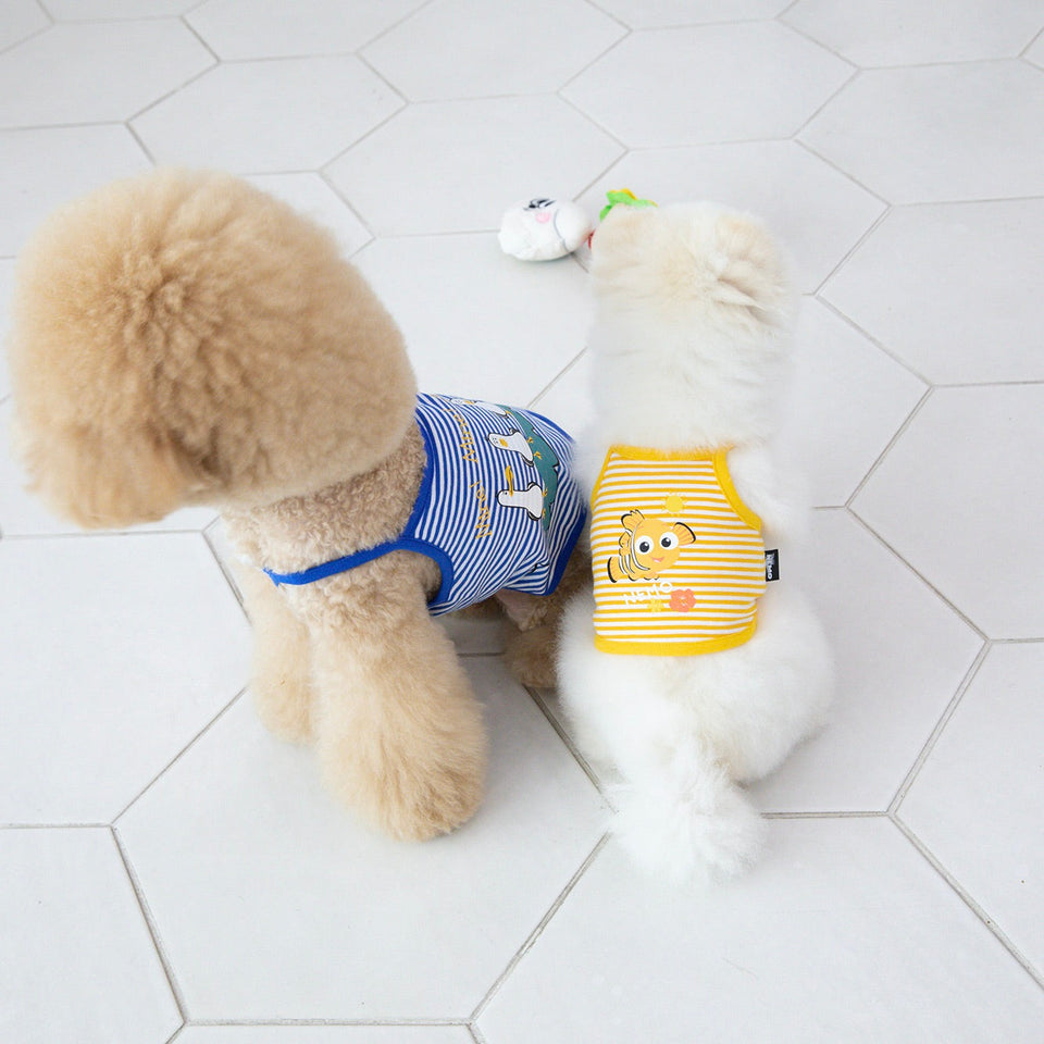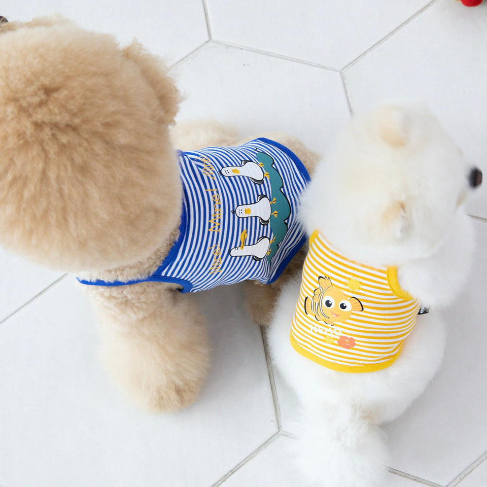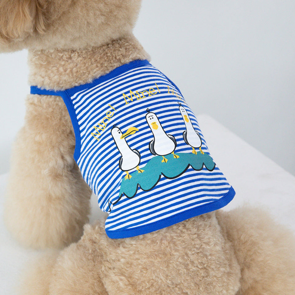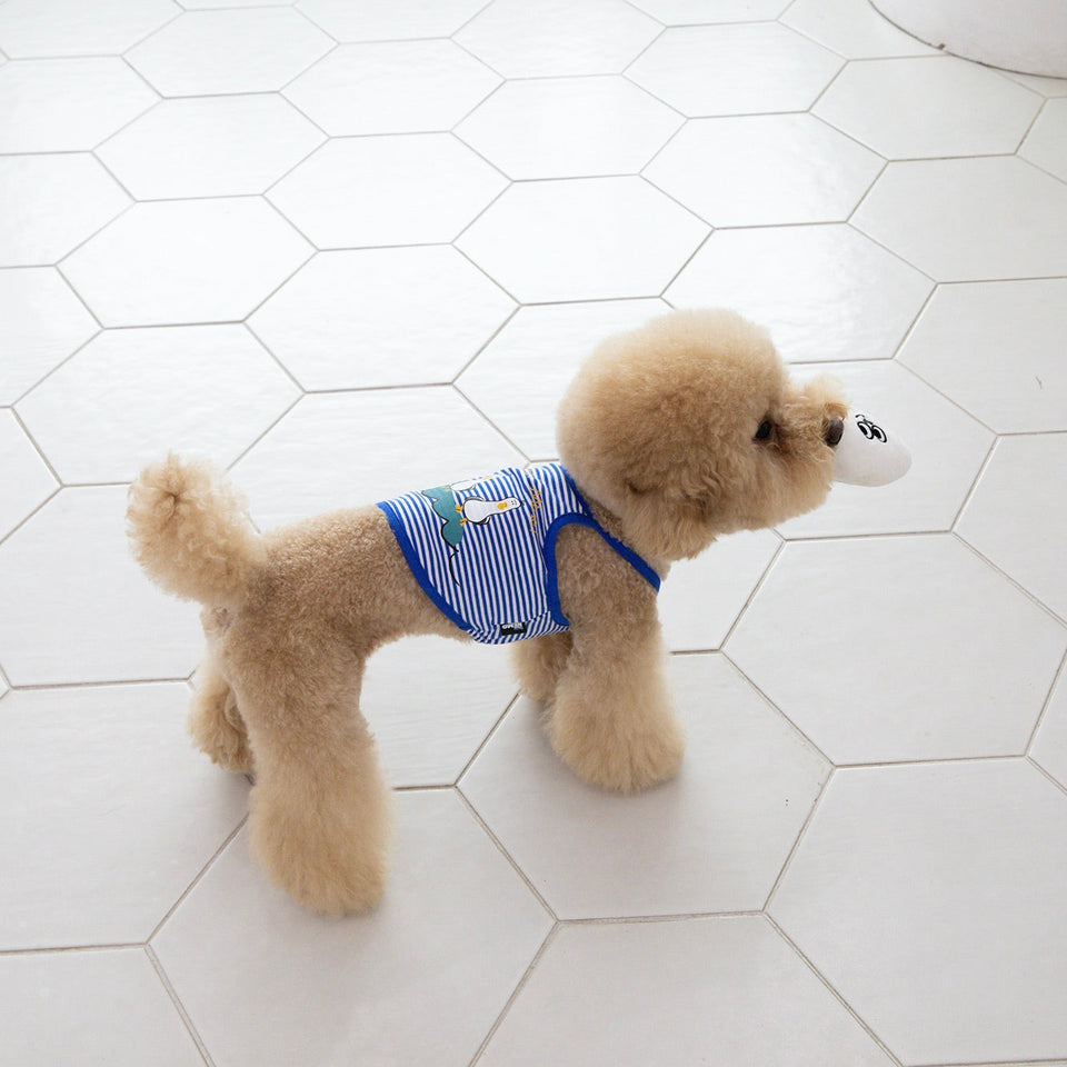 細めのボーダーと細めのストラップにカモメの可愛いキャラクターのプリントが夏らしく爽やかな印象のトップス!