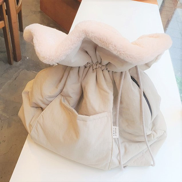 単品使いはもちろん、韓国で大人気のブランド【DOUBLE COMMA】のCOMTWO BAGにinしてご利用頂ける、内側がファーになっているインナー巾着bagです。
