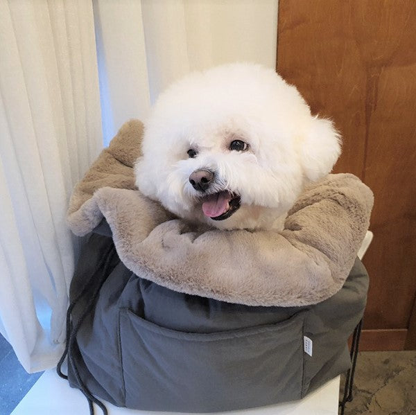 『寒い冬はDOUBLE COMMAのファー巾着で愛犬を優しく包み込んで♡』