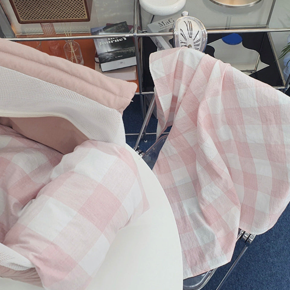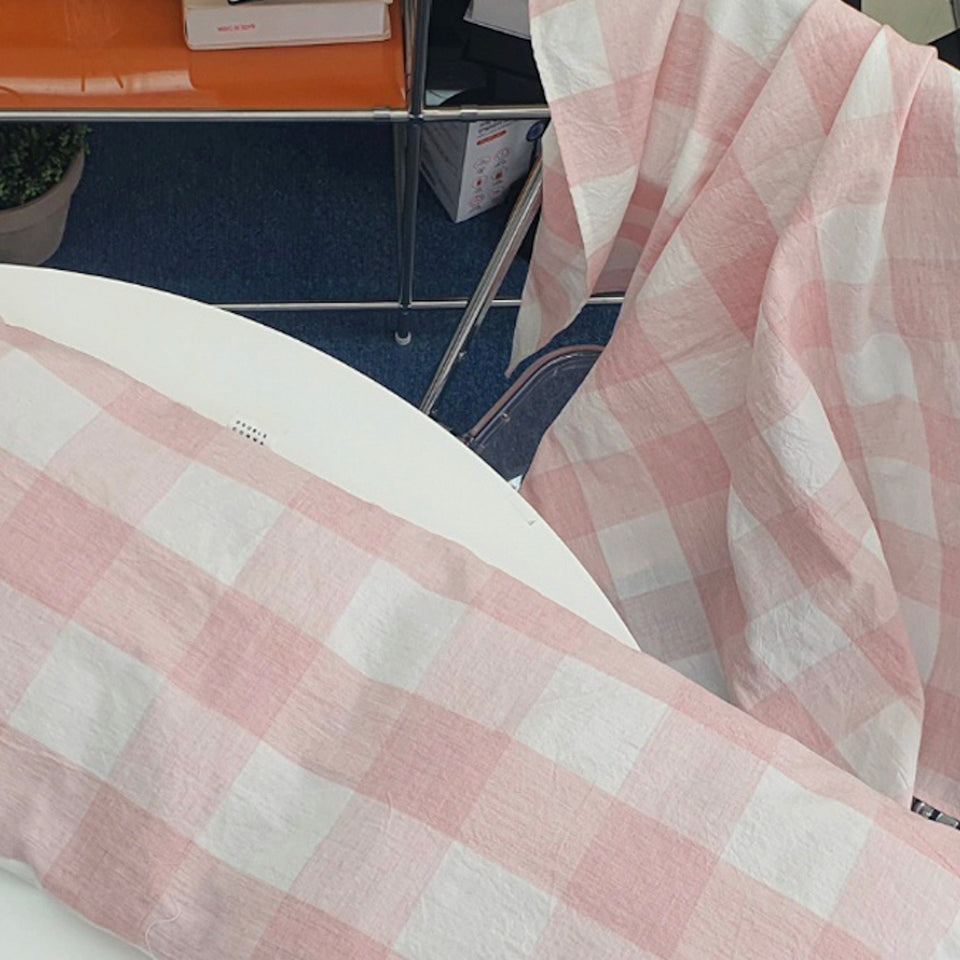 カラーは爽やかで優しい色合いのコットン100%のピンクのギンガムチェック柄です。