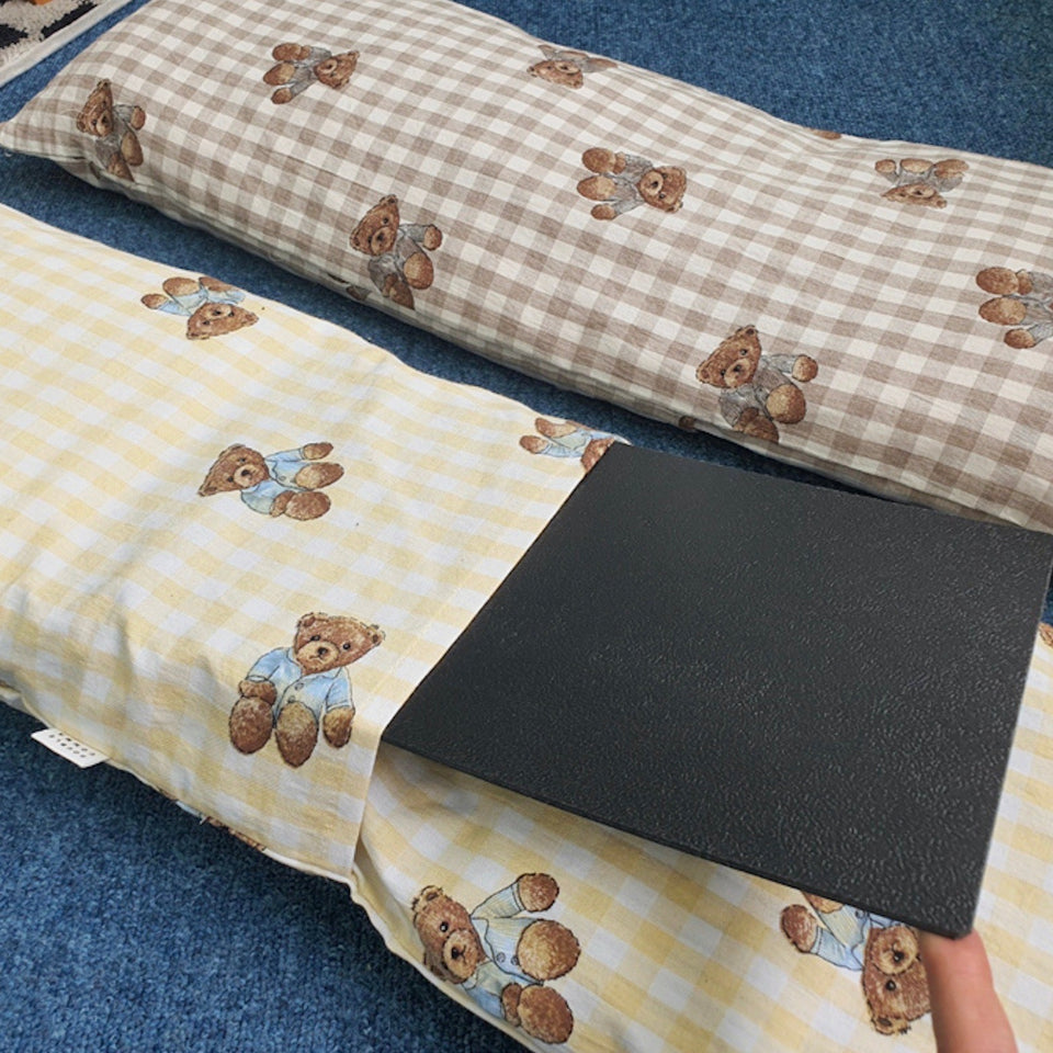 BAGを閉めて使用する際や、もしもクッションを入れてもなおBAGの中にスペースがありすぎる場合は、クッションの顎乗せ部分を外には出さず、中にしまって下さい。