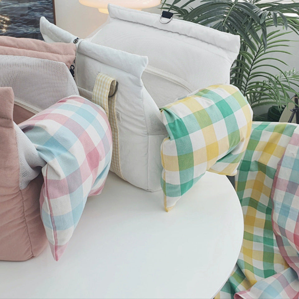 BAGを閉めて使用する際や、もしもクッションを入れてもなおBAGの中にスペースがありすぎる場合は、クッションの顎乗せ部分を外には出さず、中にしまって下さい。