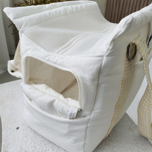 メッシュの穴が小さいので外の様子が見えてしまうとbagの中で落ち着かない子にもオススメです。