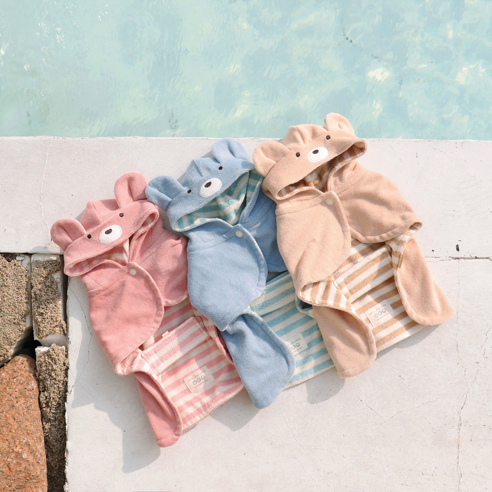 水遊びやお風呂上がりに着ることで水気を吸収し、体温を維持させてくれます!