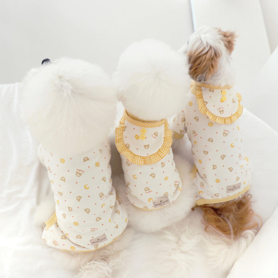 スリーブレス・Tシャツ・オールインワンの展開でどれも可愛いので好みに応じて着せてあげてください♡