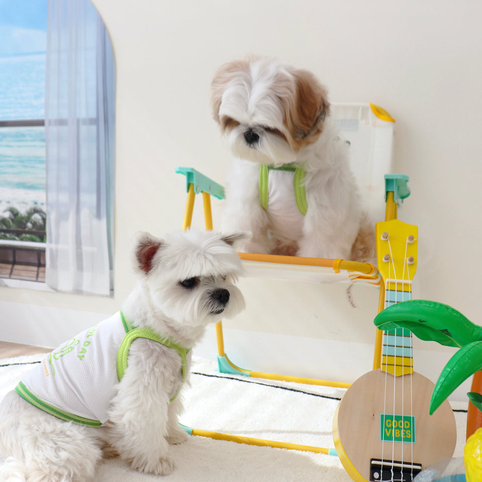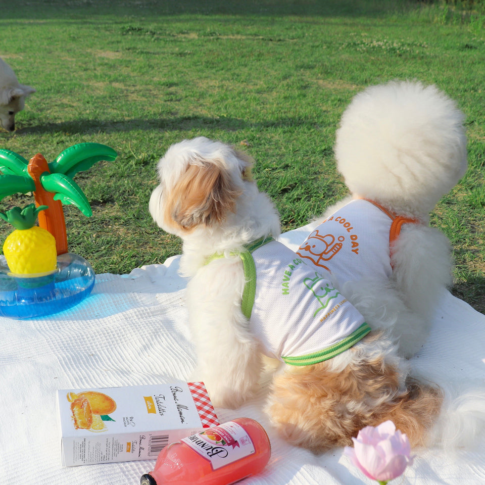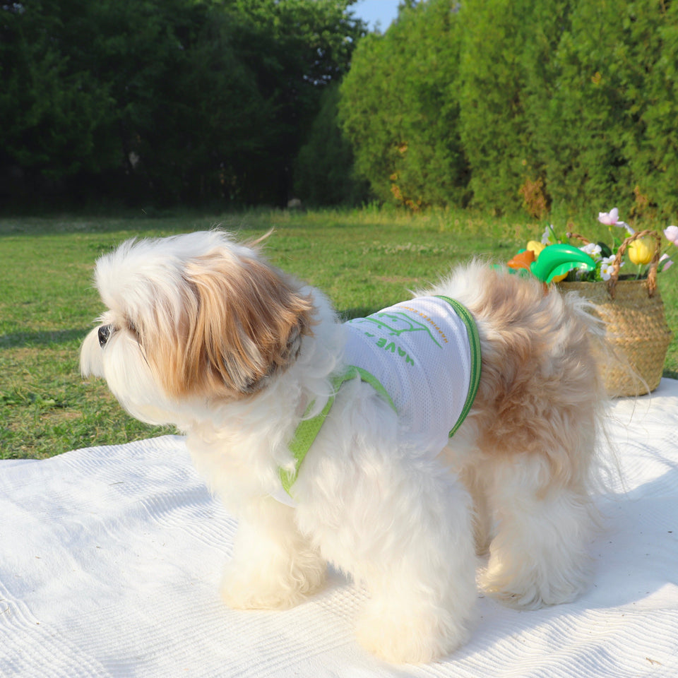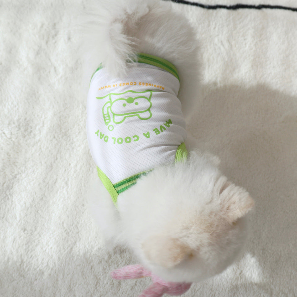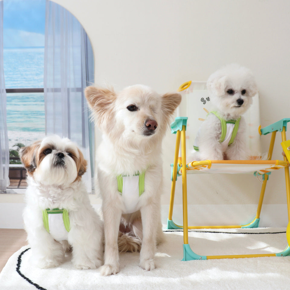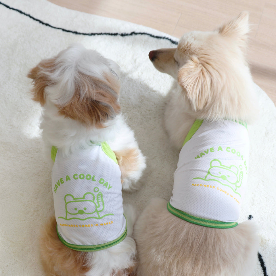 胴体から肩紐まで全て「ATB-UV」生地で製作された機能性クールトップスで紫外線カットはもちろん、水着にも使用される抗菌効果にも優れた生地で暑い日に水を濡らした後に軽く絞って着ると被毛が濡れることなく涼しさが続きます!