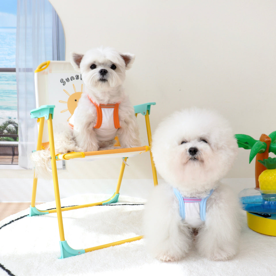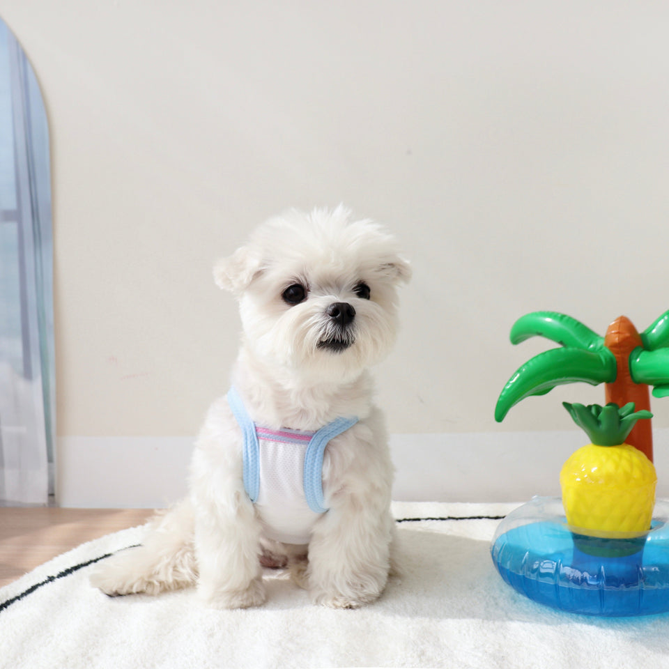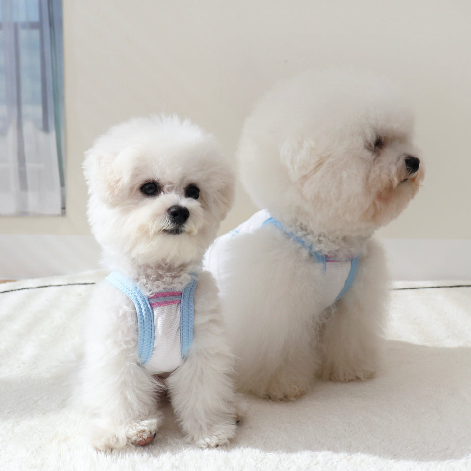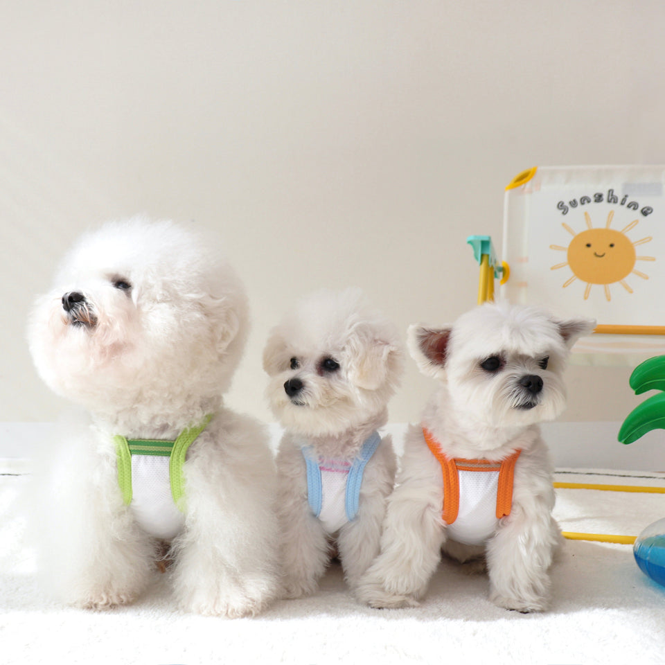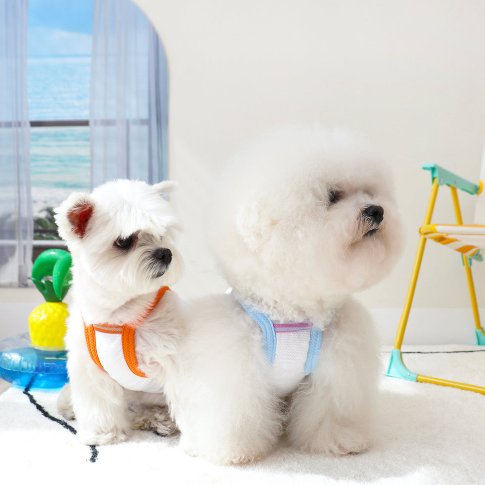 胴体から肩紐まで全て「ATB-UV」生地で製作された機能性クールトップスで紫外線カットはもちろん、水着にも使用される抗菌効果にも優れた生地で暑い日に水を濡らした後に軽く絞って着ると被毛が濡れることなく涼しさが続きます!