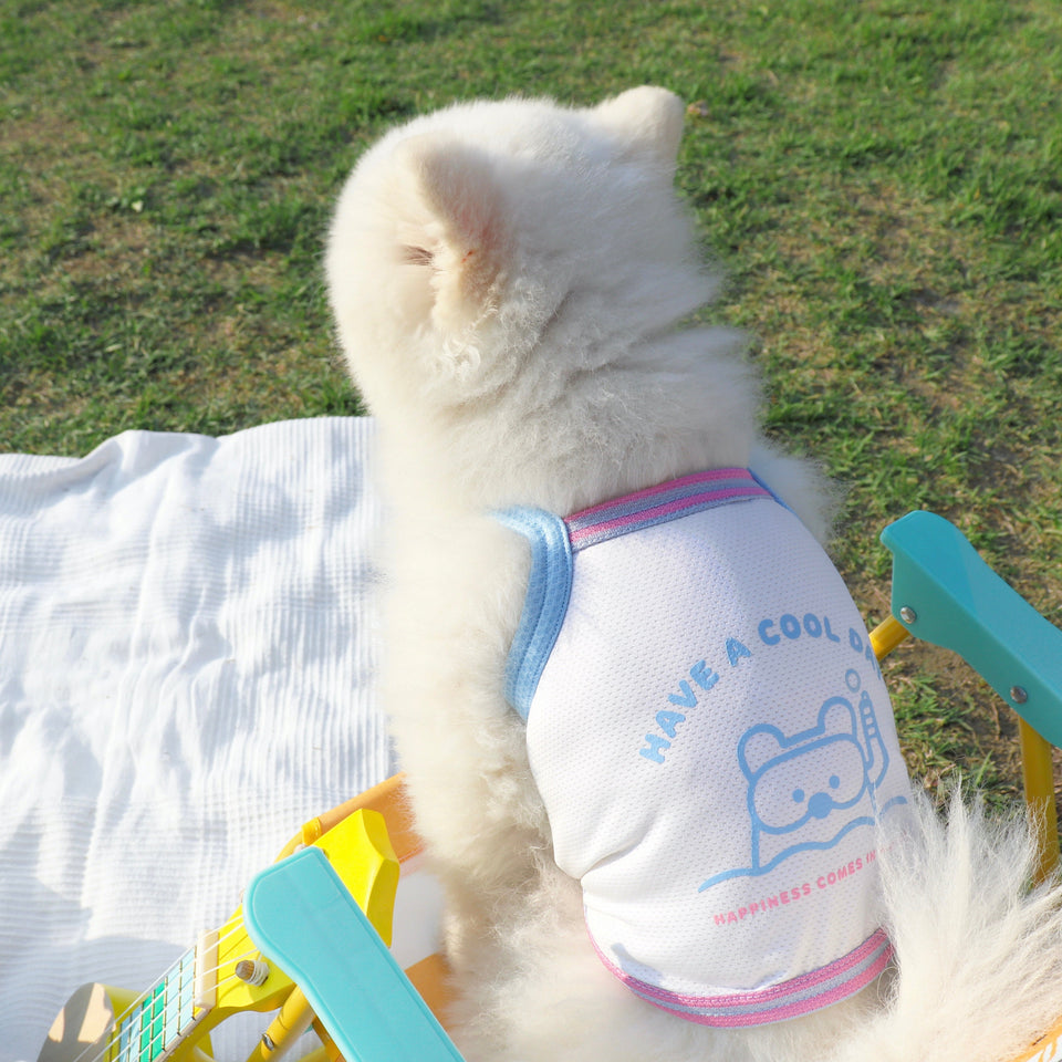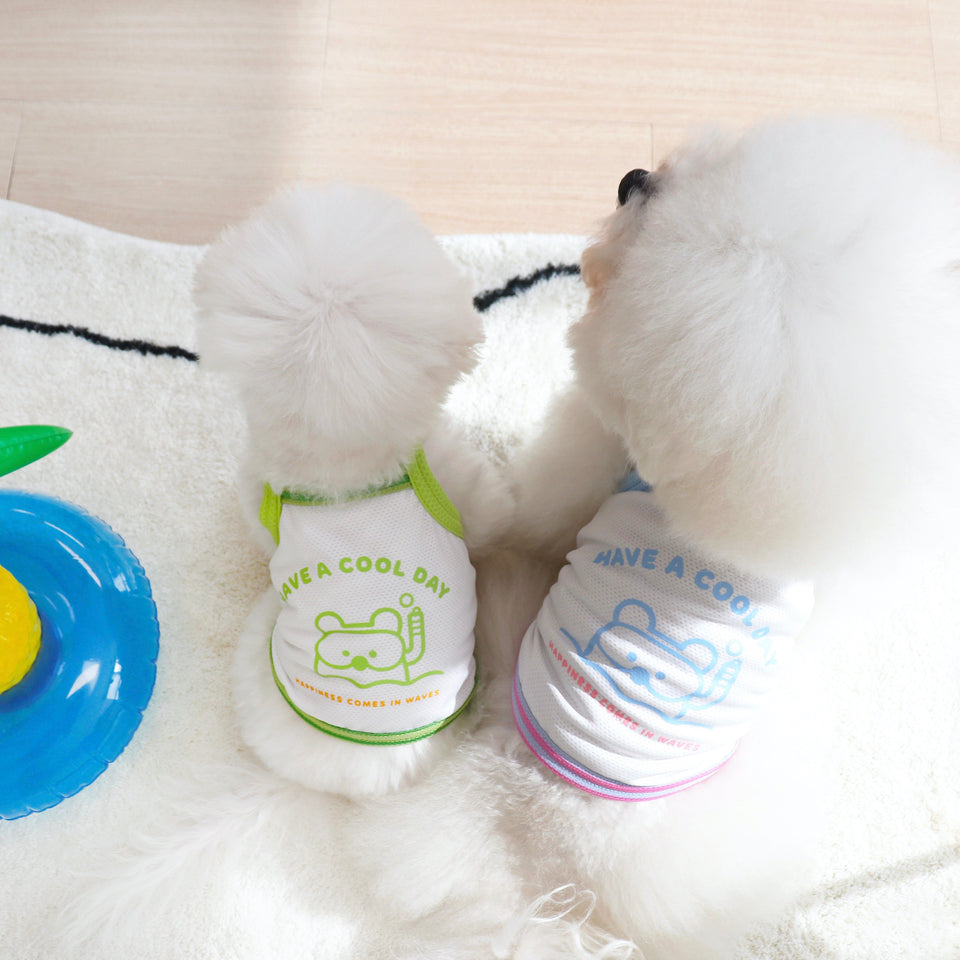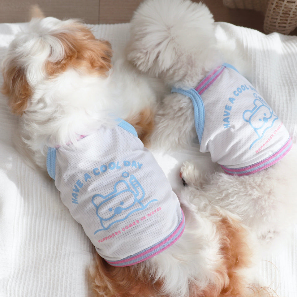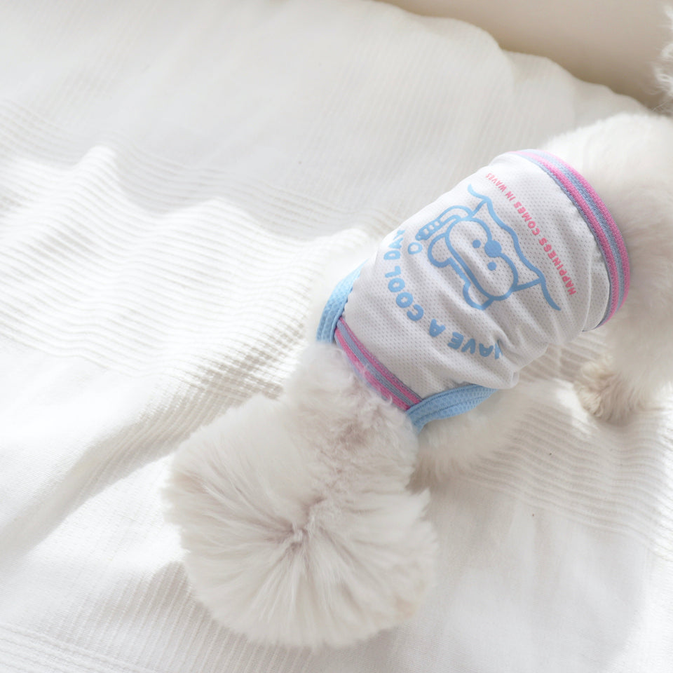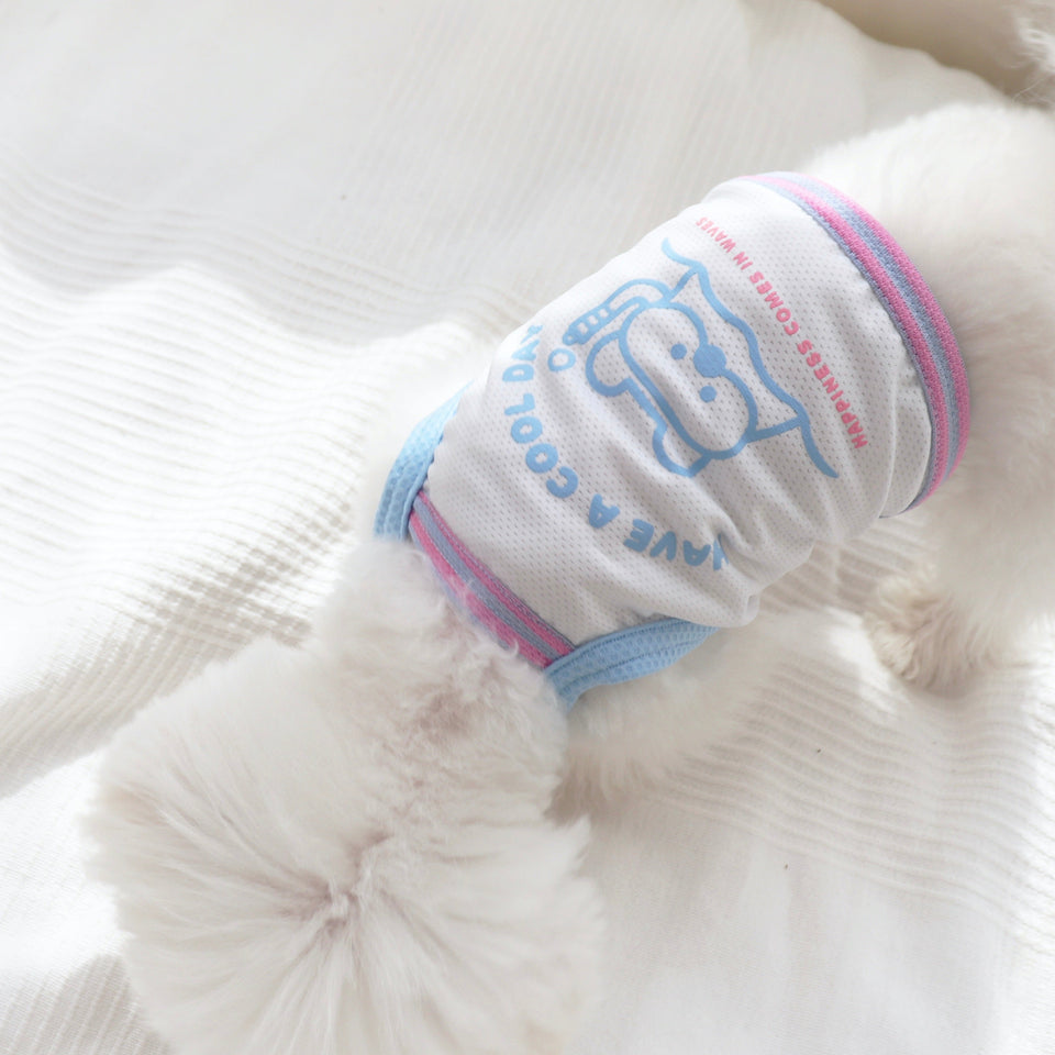 胴体から肩紐まで全て「ATB-UV」生地で製作された機能性クールトップスで紫外線カットはもちろん、水着にも使用される抗菌効果にも優れた生地で暑い日に水を濡らした後に軽く絞って着ると被毛が濡れることなく涼しさが続きます!