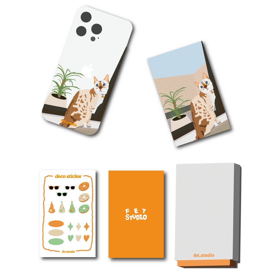 韓国で大注目のデザインスタジオ 『fet.studio』とコラボレーションした「iPhoneケース」「ポストカード」「デコレーションシール」の1匹用SETです。