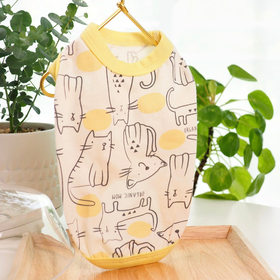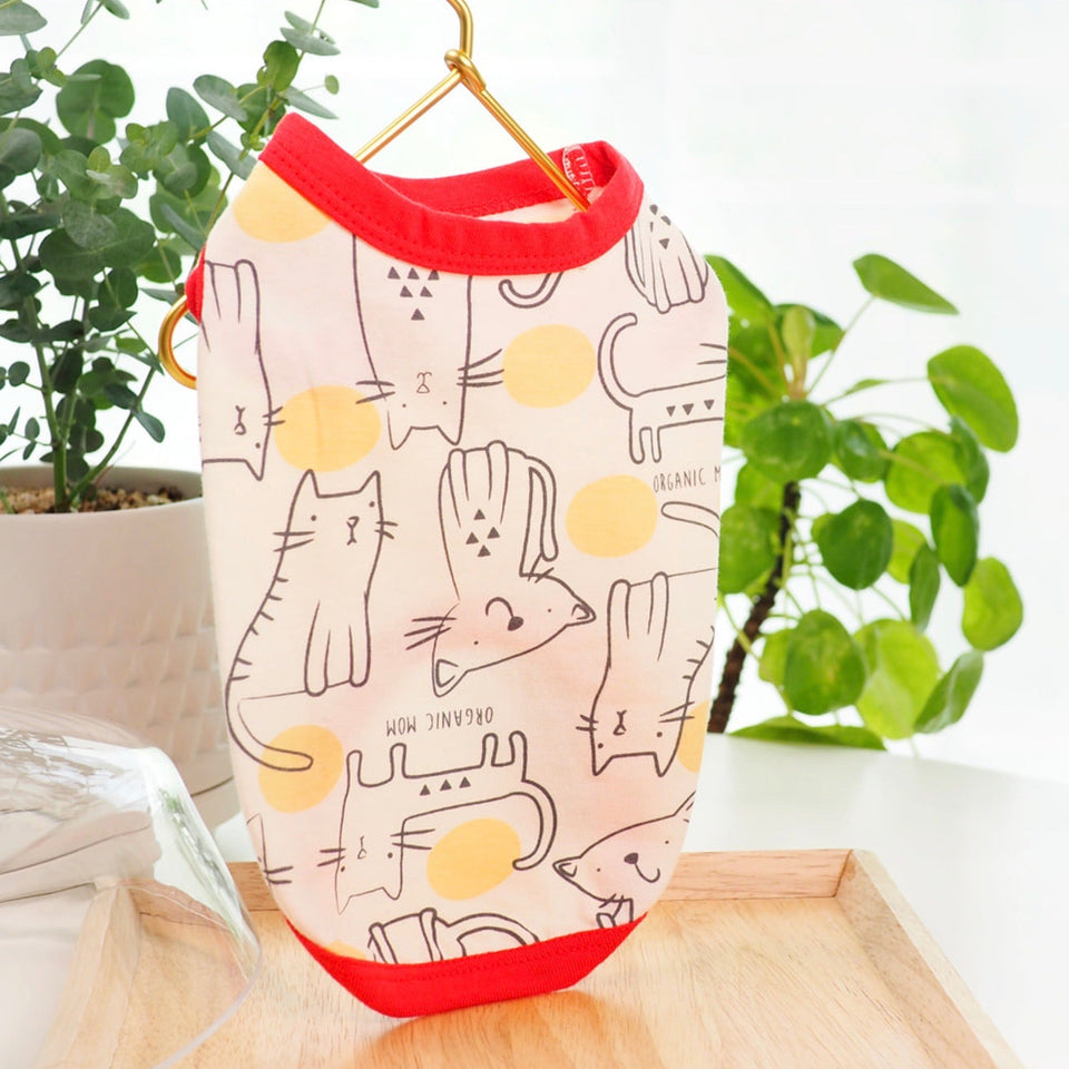 『キャット柄が可愛いオーガニックコットンのスリーブレス』