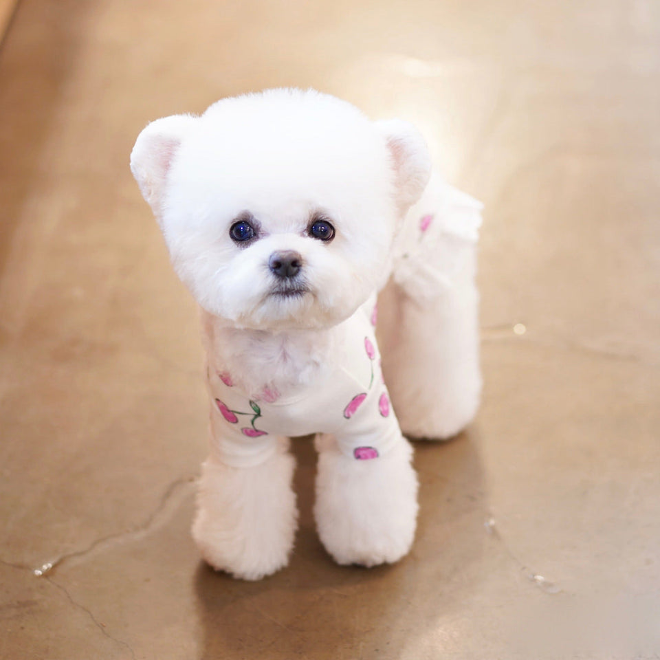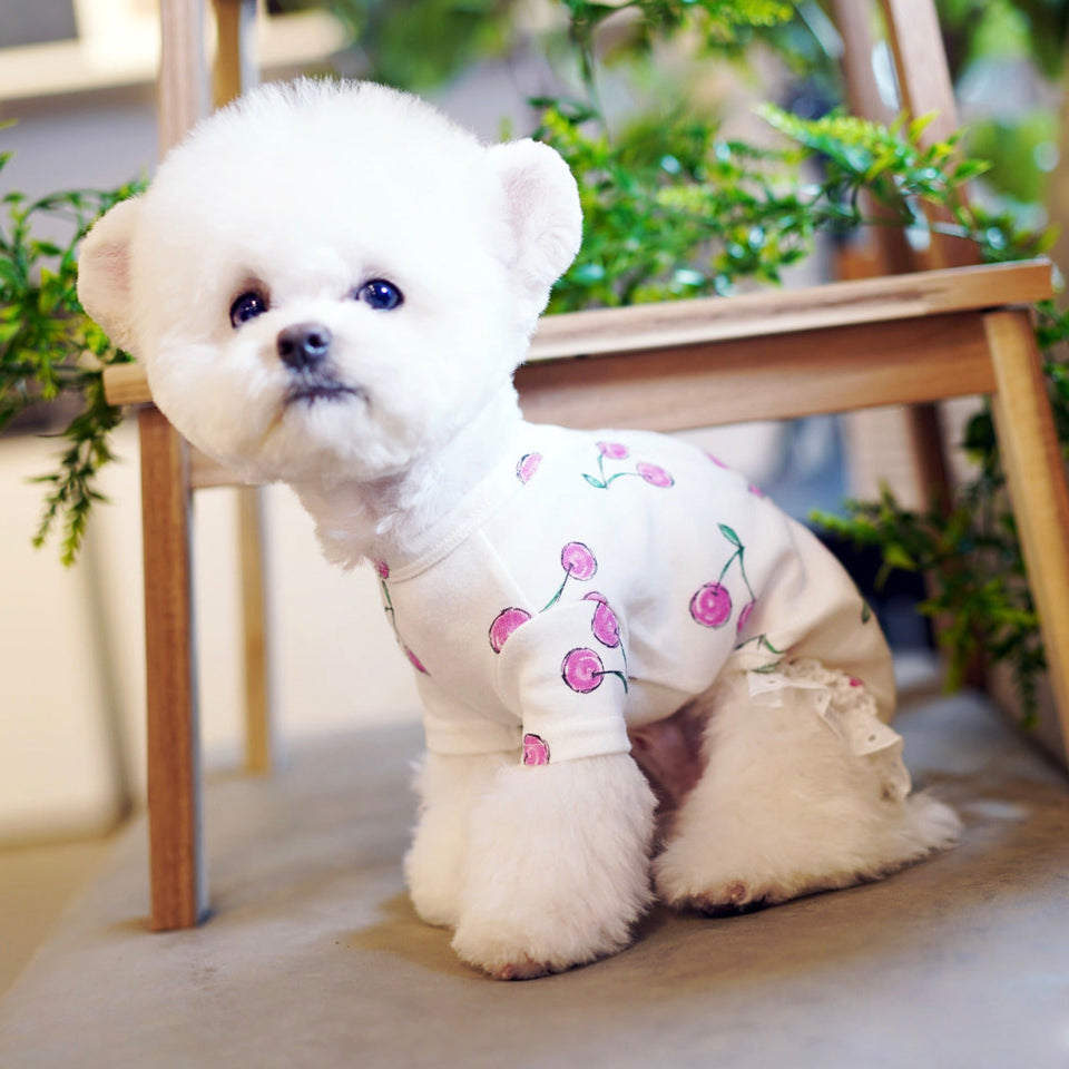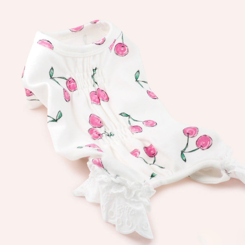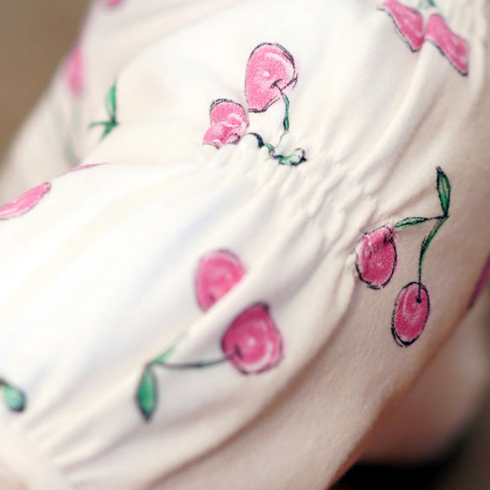 コットン100%の着心地良い生地に大きめのチェリー柄がプリントされたデザイン!