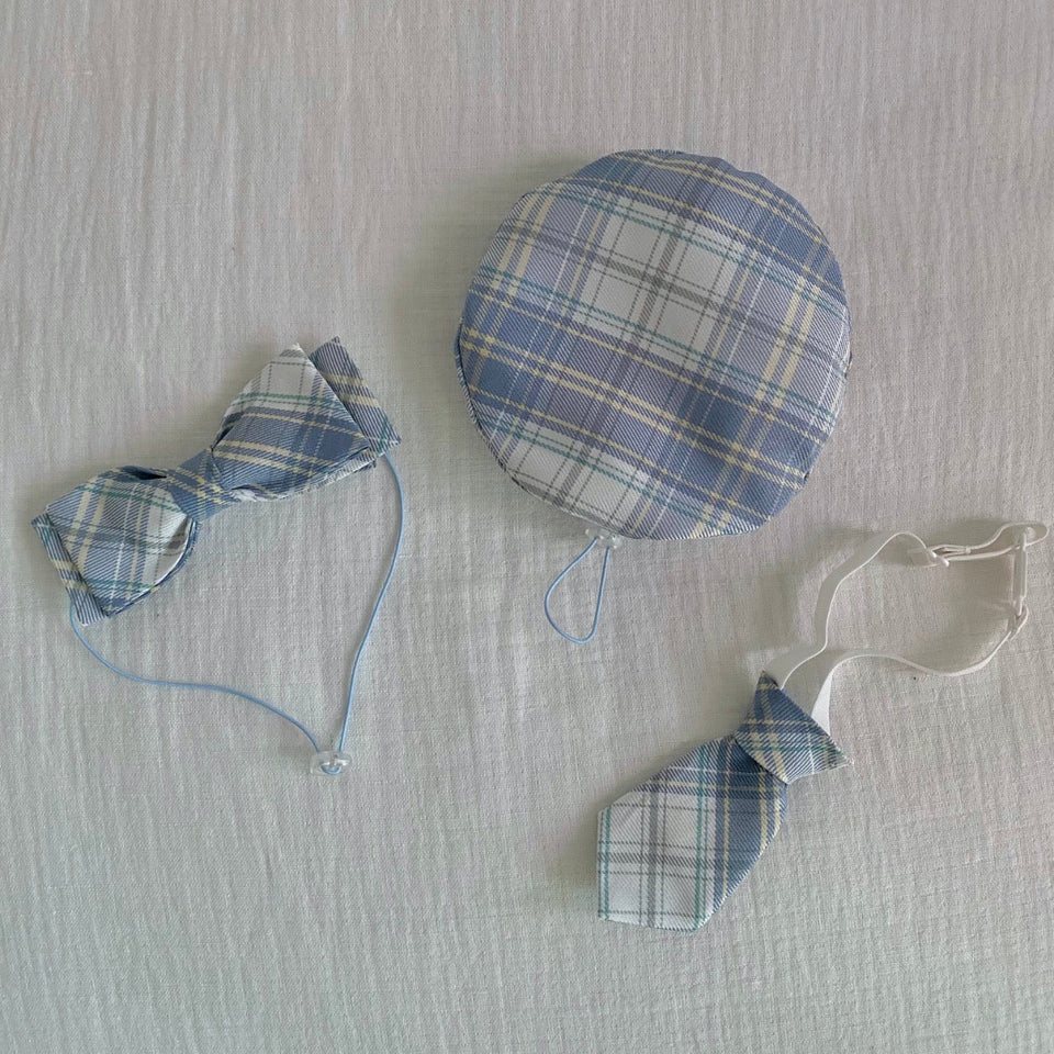 tie:タイ ribbon:リボン(ヘアバンド) beret:ベレー帽 Set of 3:3点セット