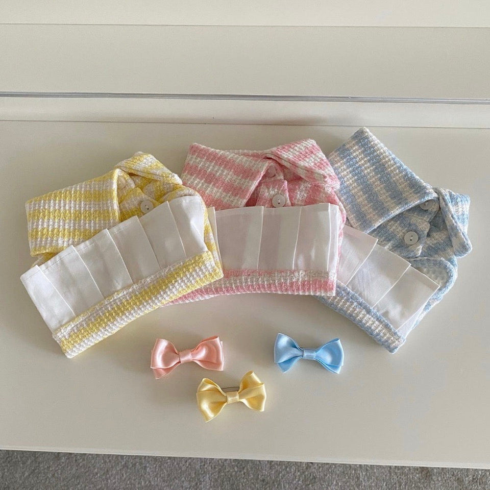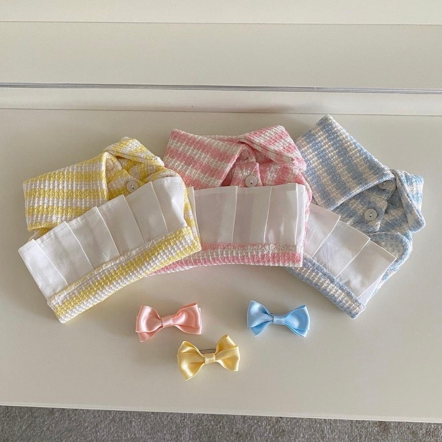 独特の生地感が可愛く、大きめの襟とドッキングされたスカートがポイントです!