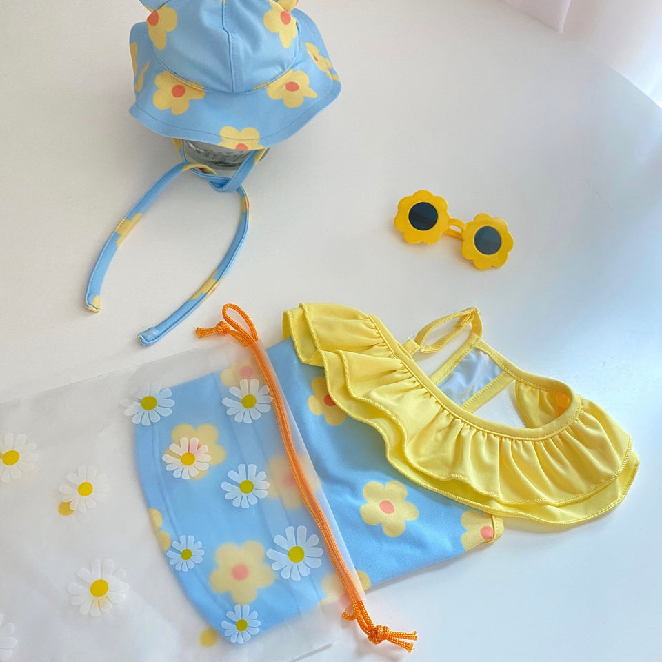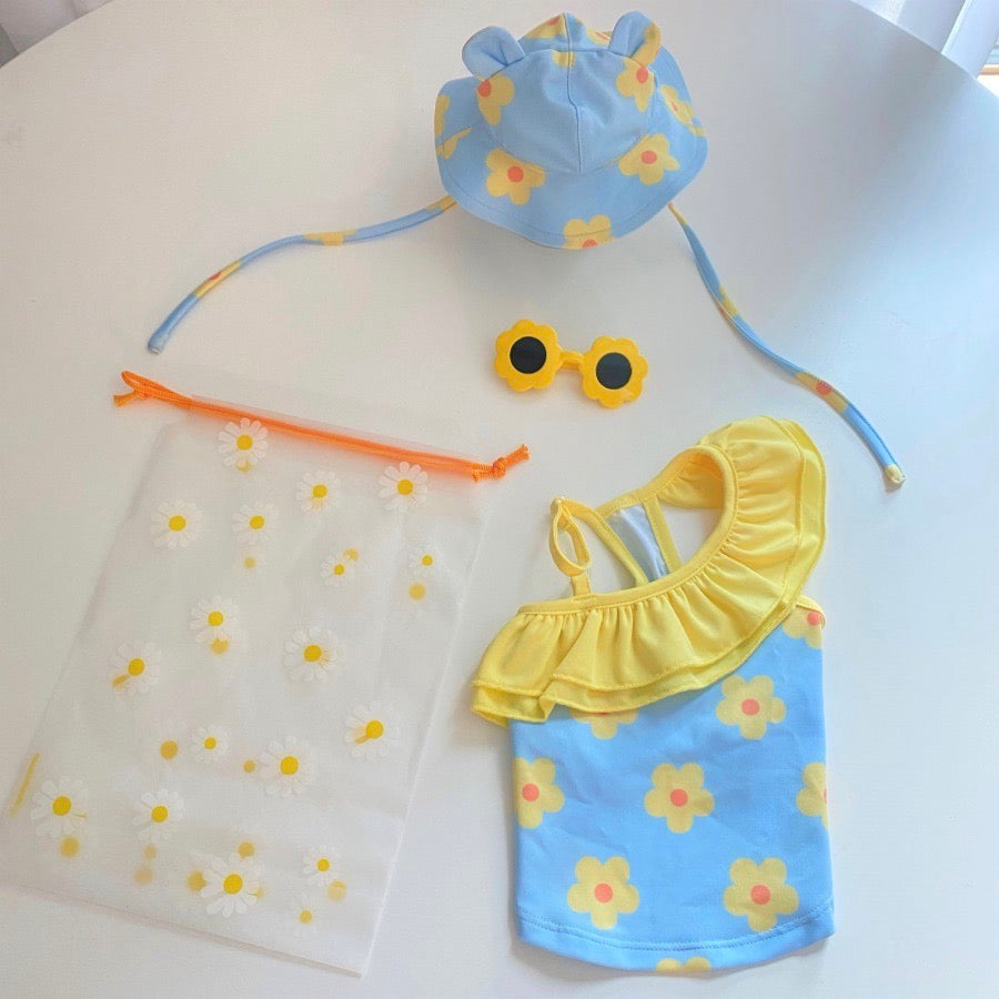 また、水着を購入されると花柄の巾着もセットでついてくるので、たくさん遊んで濡れたお洋服も鞄などを濡らさず持ち帰ることができます!