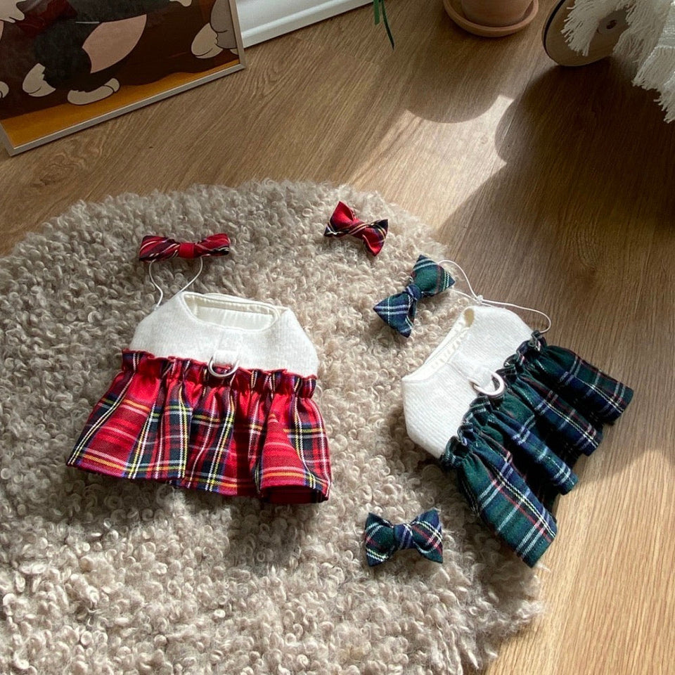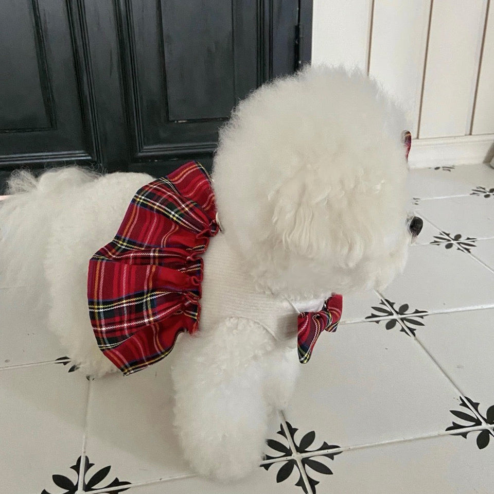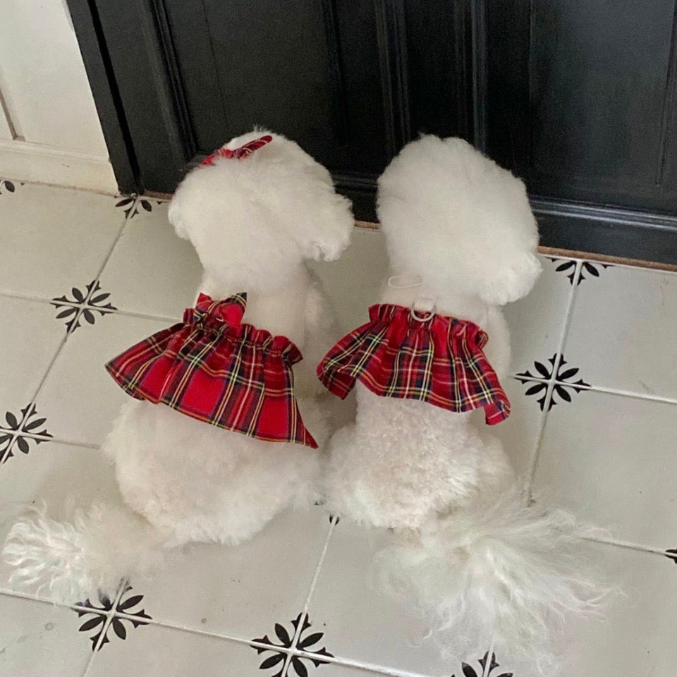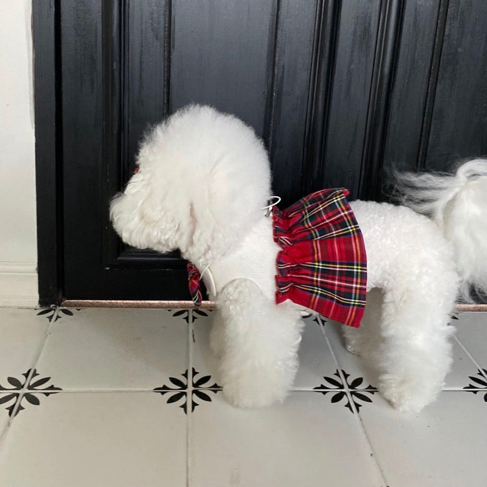 タータンチェックがクラシックな雰囲気で上品なお洋服一体型ハーネス!