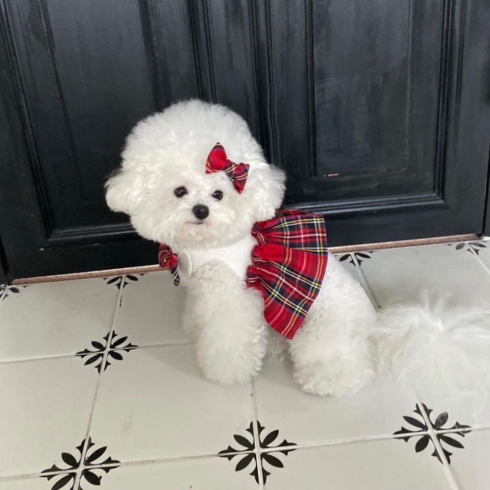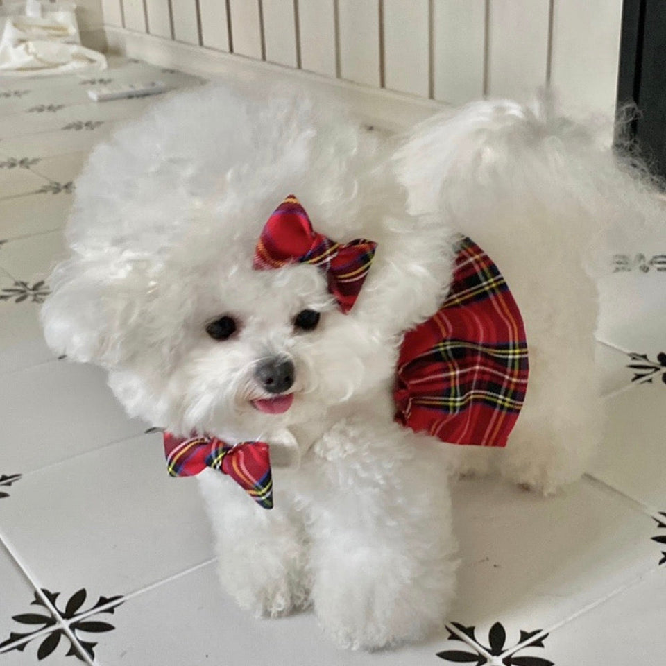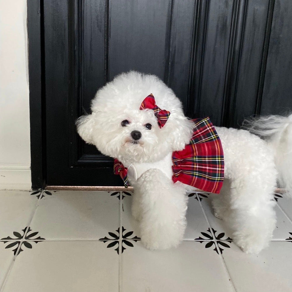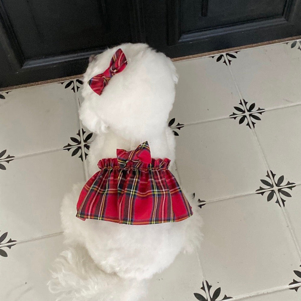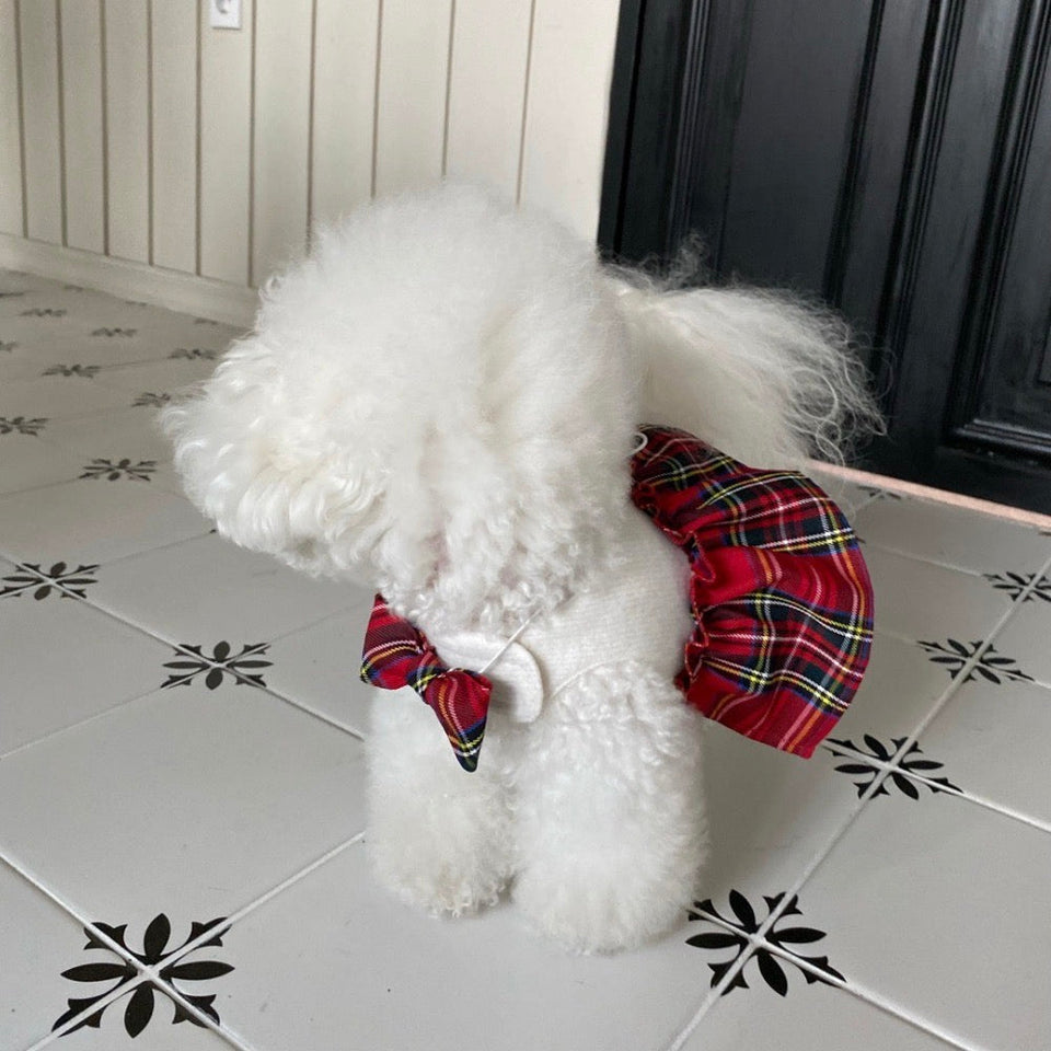 タータンチェックがクラシックな雰囲気で上品なお洋服一体型ハーネス!
