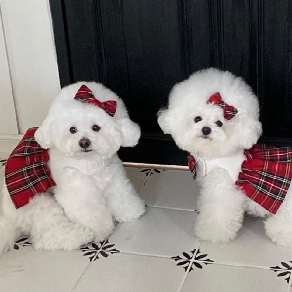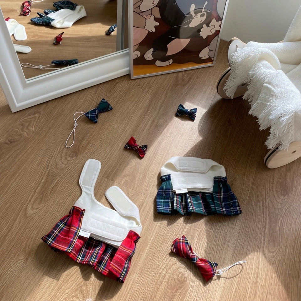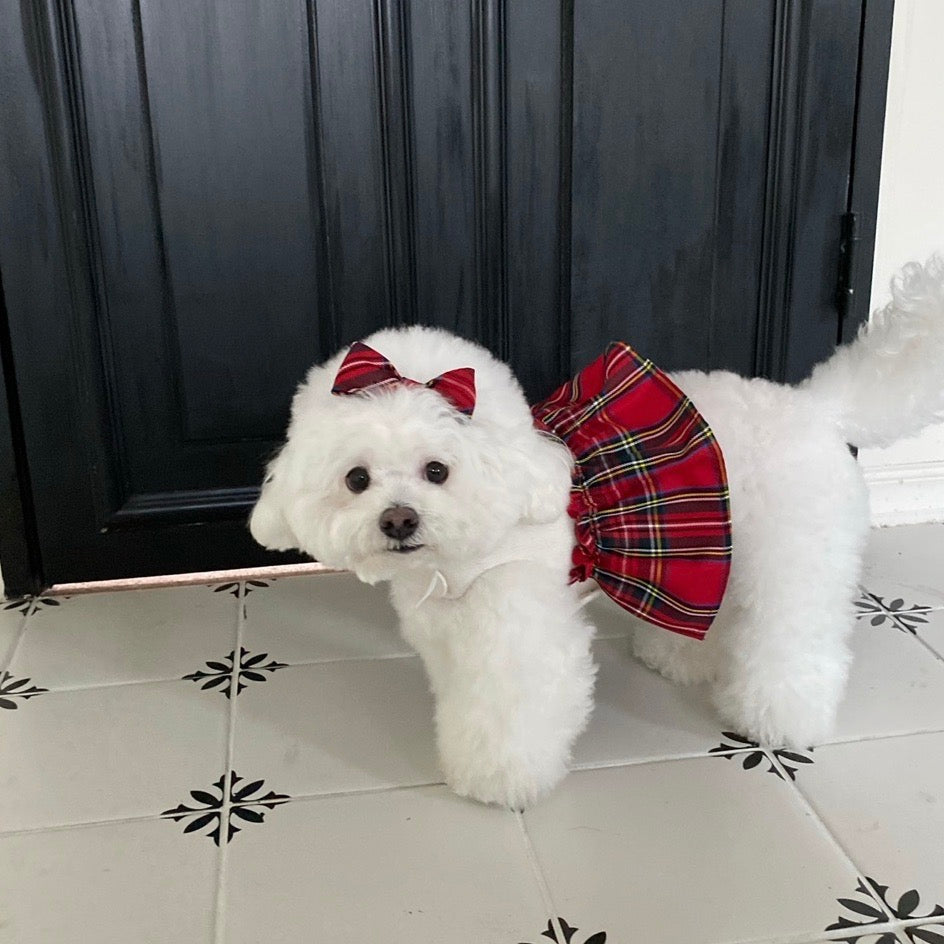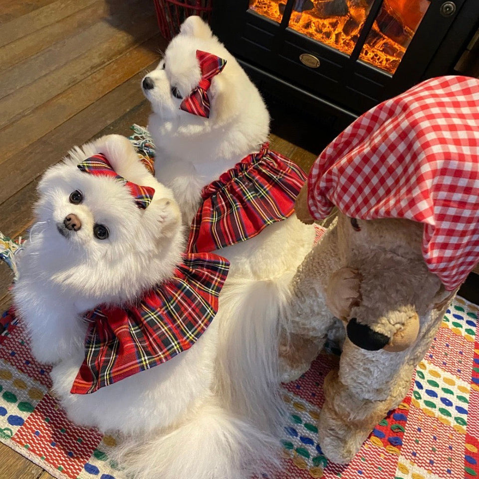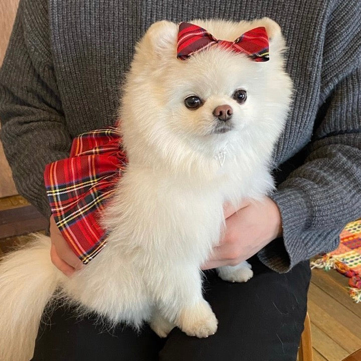 タータンチェックがクラシックな雰囲気で上品なお洋服一体型ハーネス!
