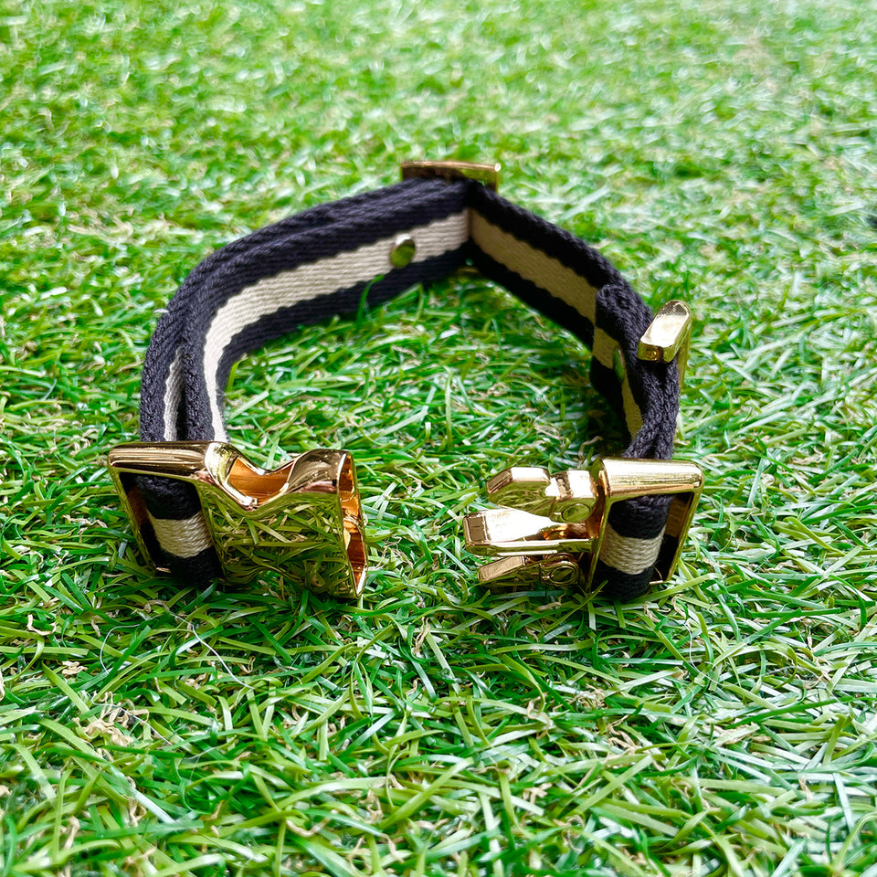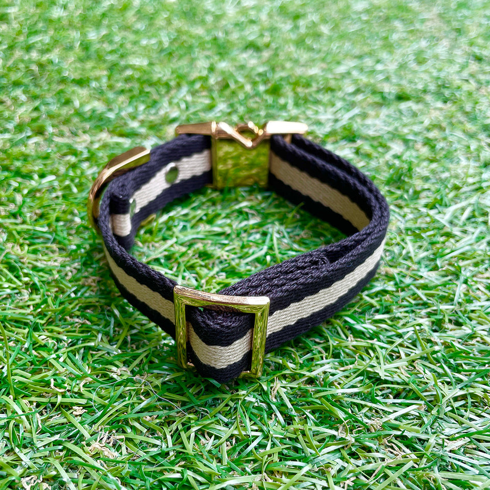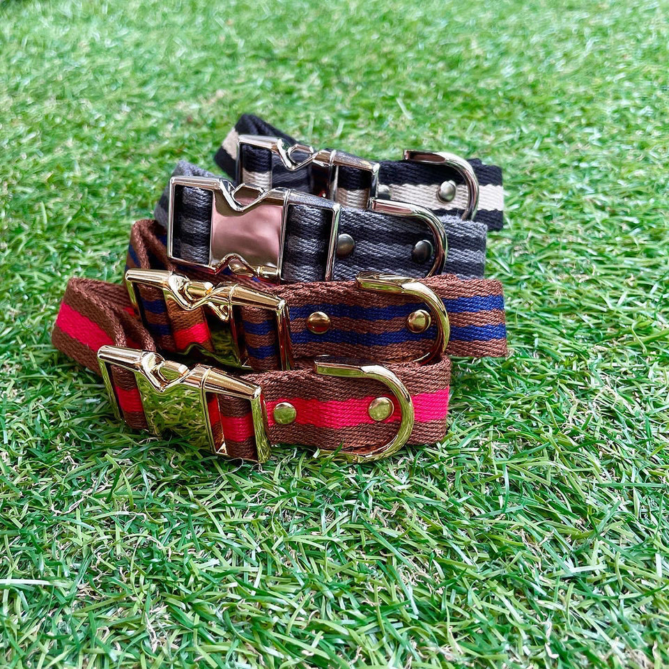 某海外メゾン『H』でも使用されている、日本製テープを使用したストライプドッグカラー!