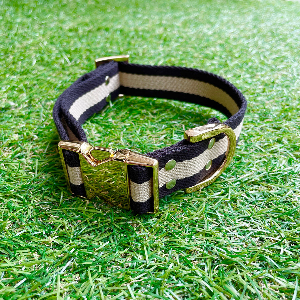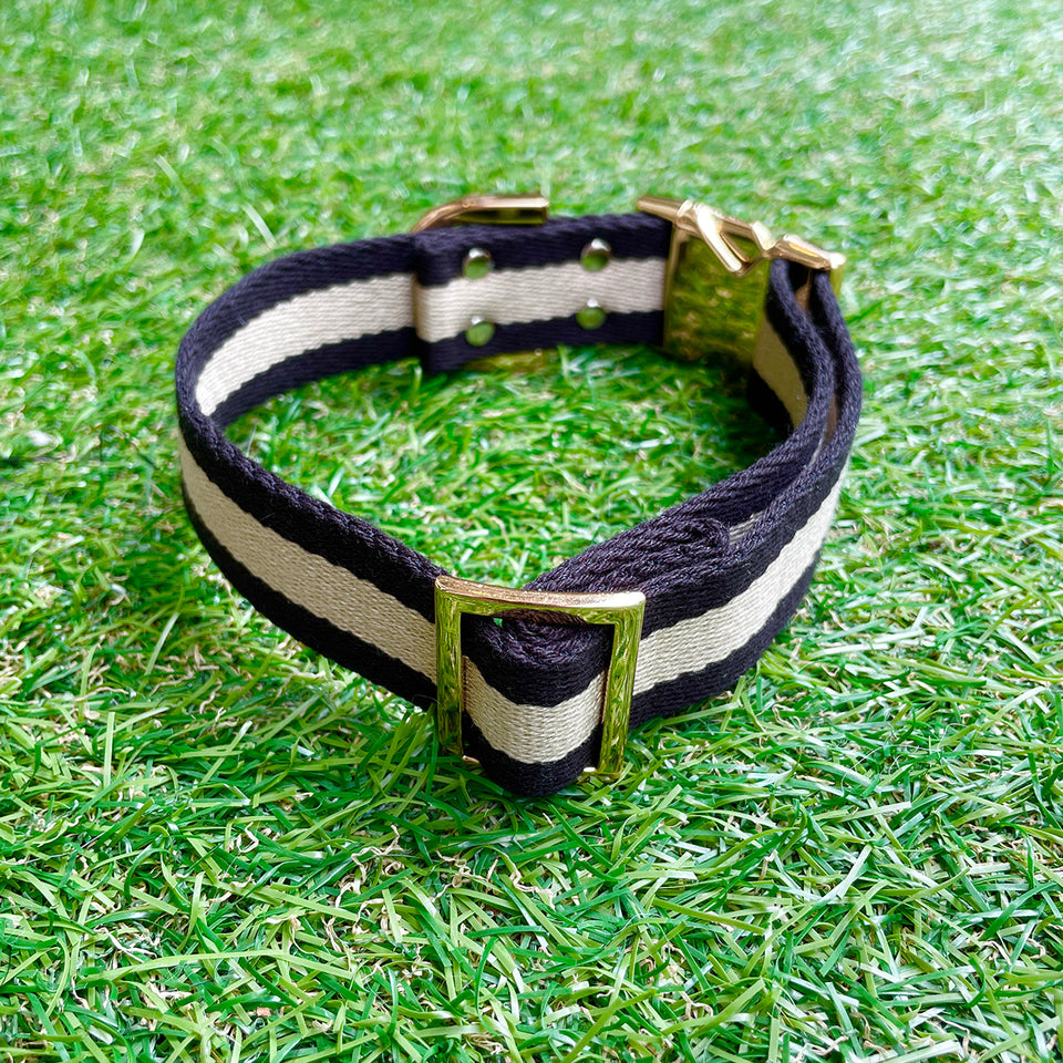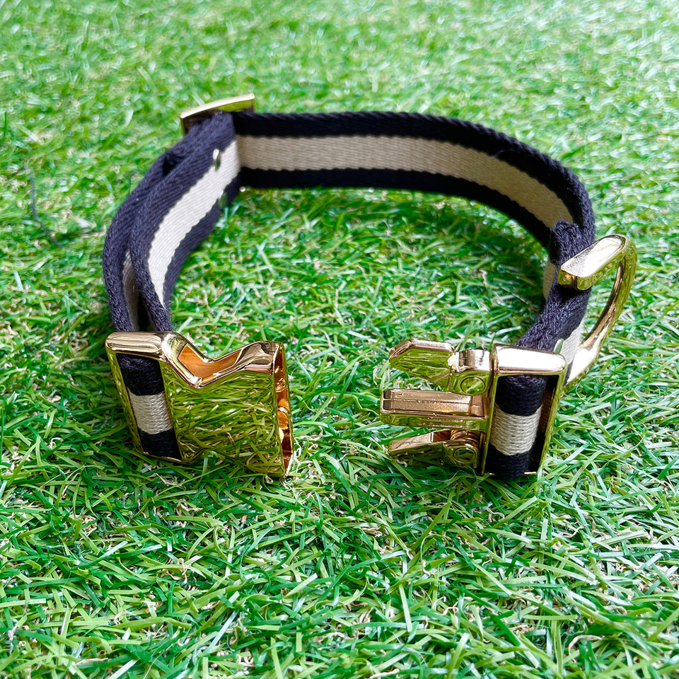 某海外メゾン『H』でも使用されている、日本製テープを使用したストライプドッグカラー!