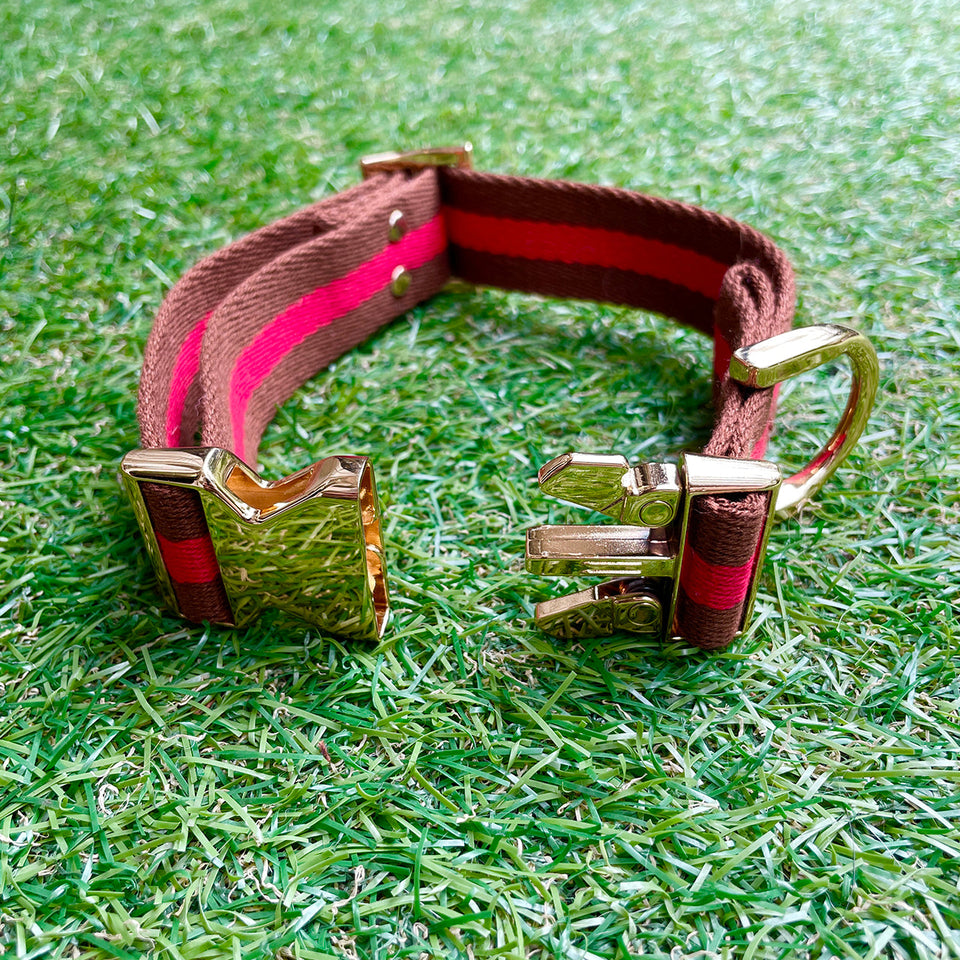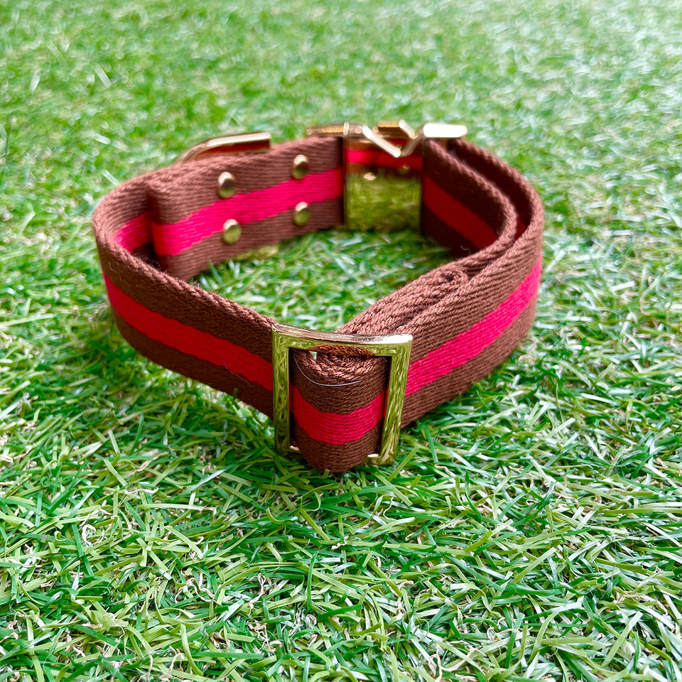 ※予約販売【HOSU】HOSU stripe dog collar(30mm)/Red×Brown