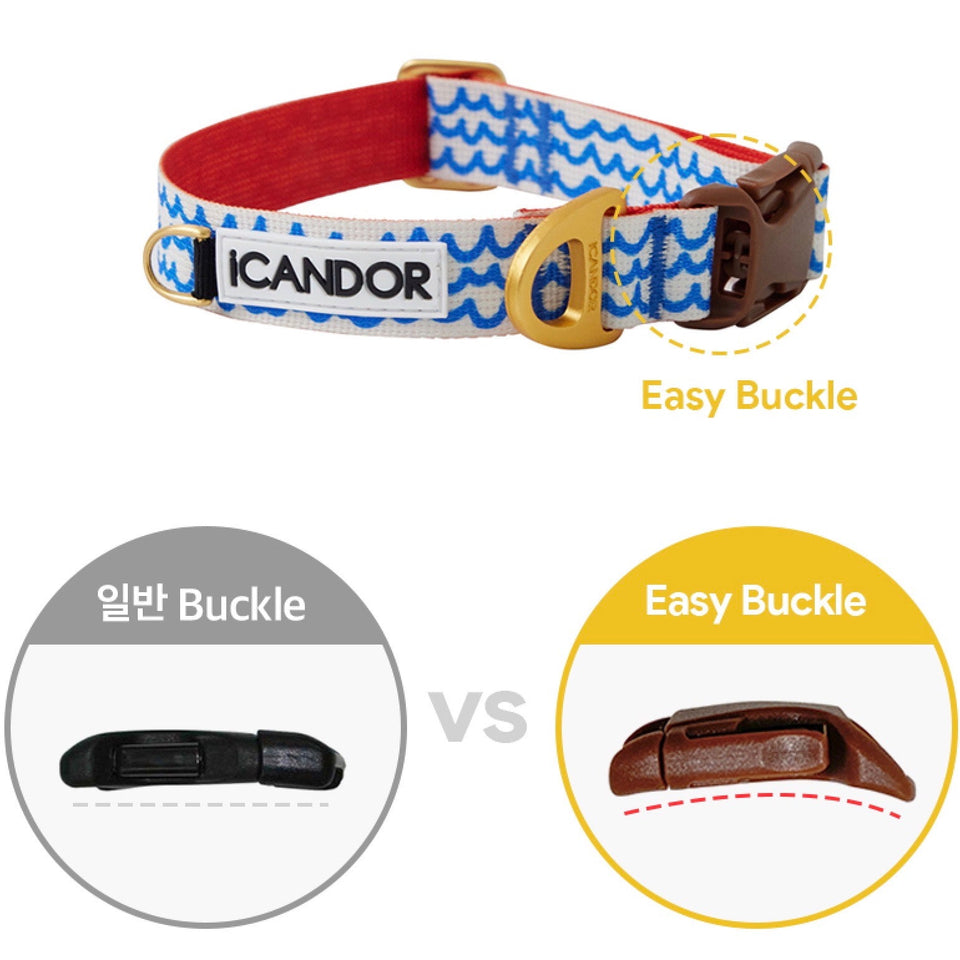 強い耐久性を持つiCANDORのイージーバックルはクイックスナップタイプで安定性が高く、着用時に素早く着脱ができます!