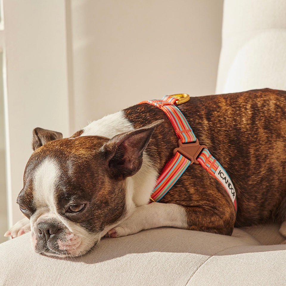 iCANDORのハーネスはわんちゃんの体型に関係なく、簡単に素早く着用できるLシェイプの構造です。