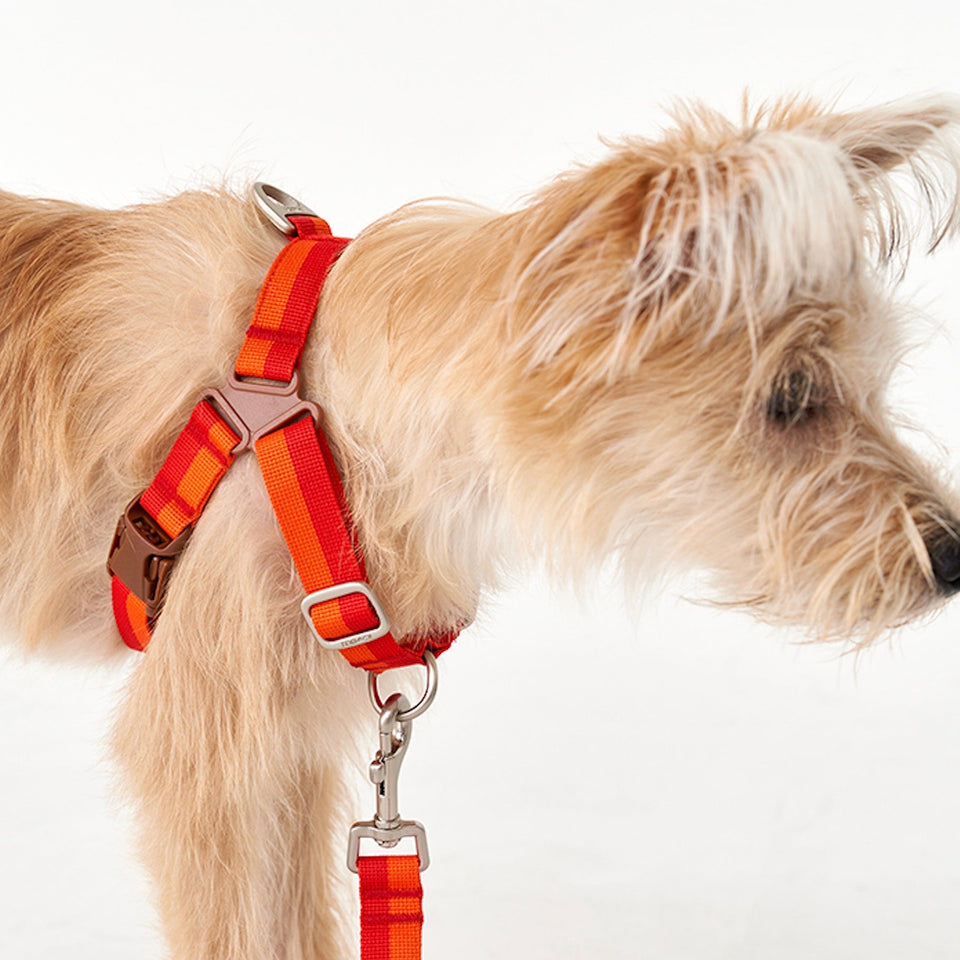 バックルもクイックスナップタイプで安定性が高く、着用時に素早く着脱ができるので、普段ハーネスをつけるのが苦手な子でも首を突っ込みバックルだけで簡単に着こなせるストレスフリーなデザインです!