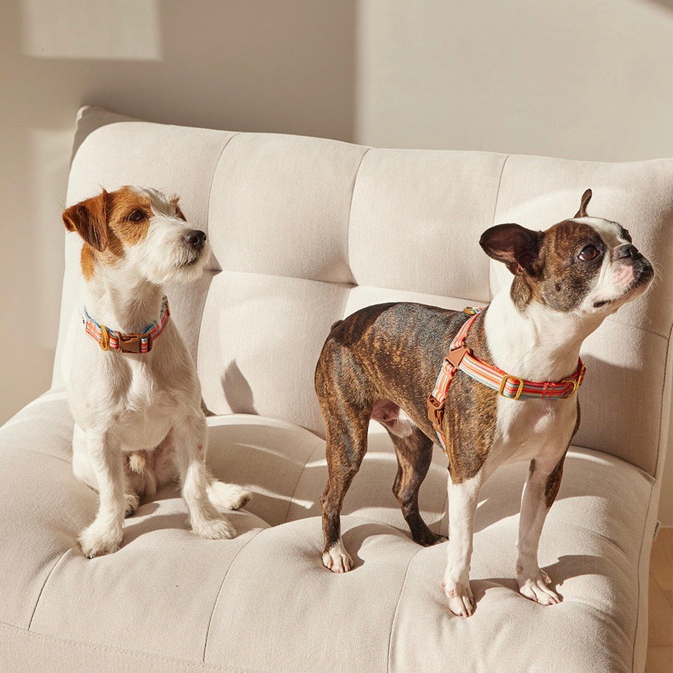 ※こちらのノープルハーネスは他に同柄でリードと首輪、マナーポーチのご用意をしております。