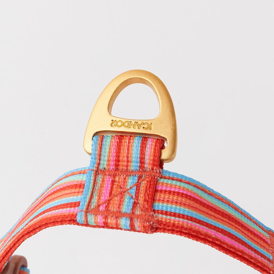 「軽さ」と「丈夫さ」にこだわりiCANDORが独自開発したアルミDリングはジェントルリーシュと丈夫につながり、どの角度からもリーシュがつなぐことができるため、自由で快適なお散歩が可能です!