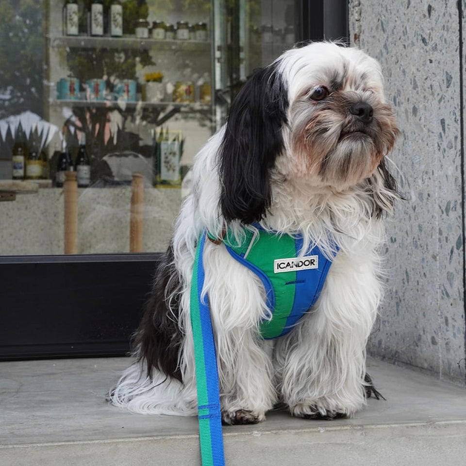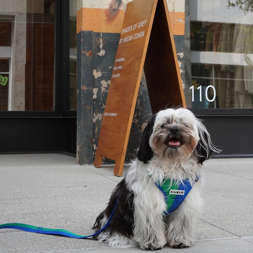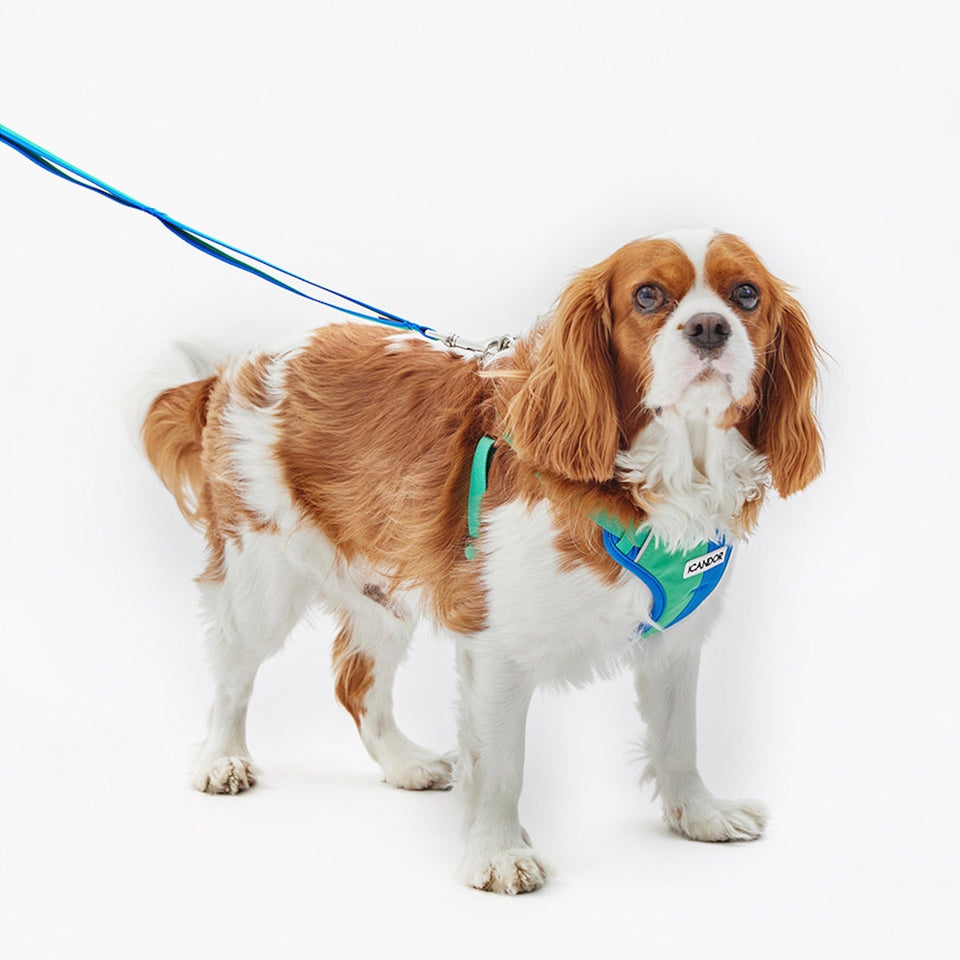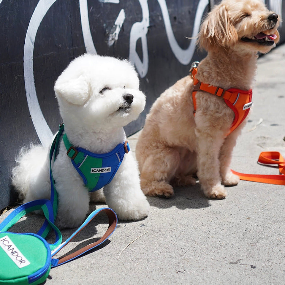 iCANDORのハーネスはわんちゃんの体型に関係なく、簡単に素早く着用できるLシェイプの構造です。
