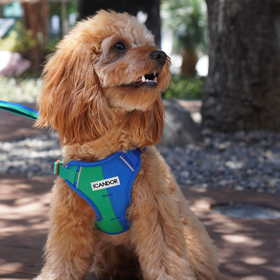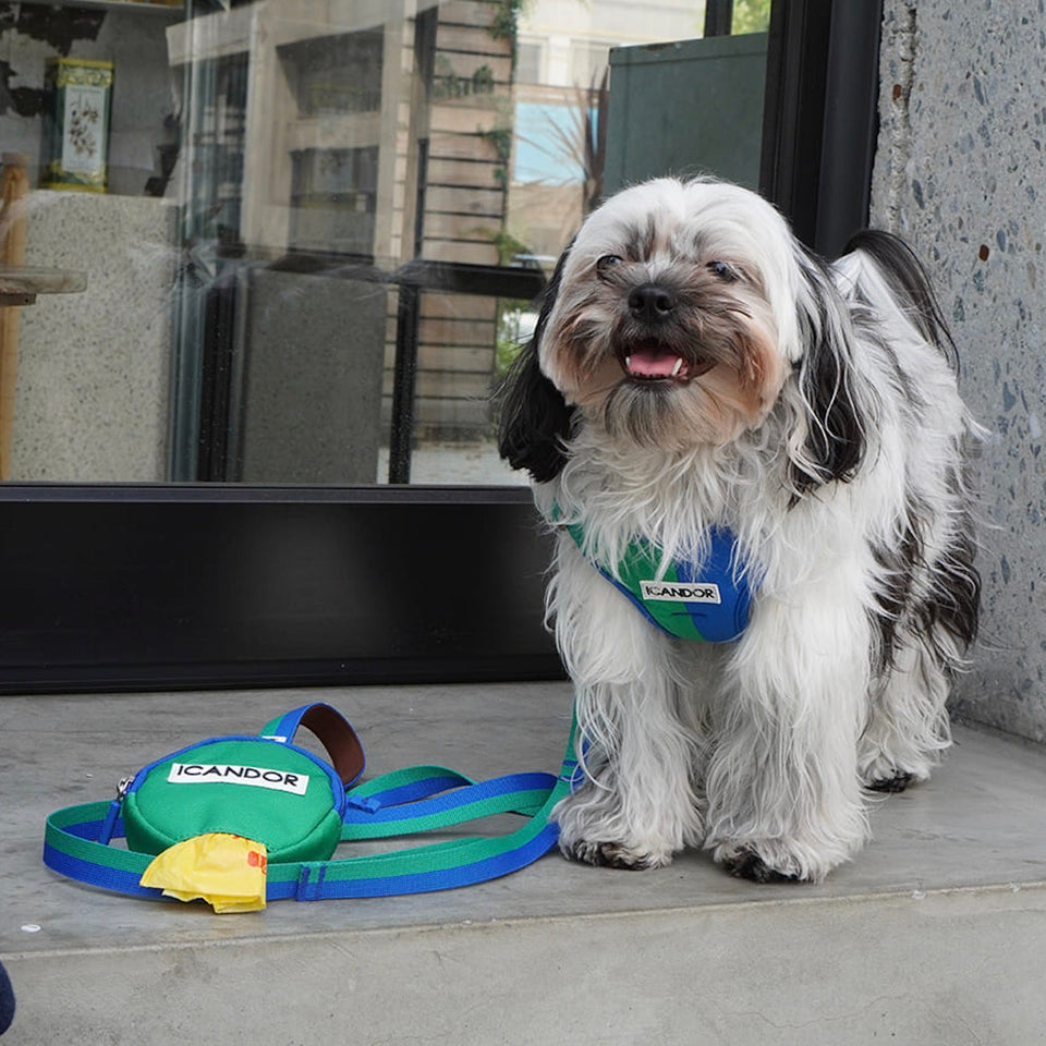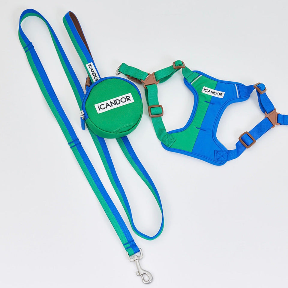 韓国の人気ブランド“iCANDOR”の大ヒットお散歩アイテムスナグルハーネスからフォレストです。