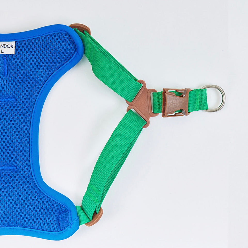 バックルもクイックスナップタイプで安定性が高く、着用時に素早く着脱ができるので、普段ハーネスをつけるのが苦手な子でも首を突っ込みバックルだけで簡単に着こなせるストレスフリーなデザインです!