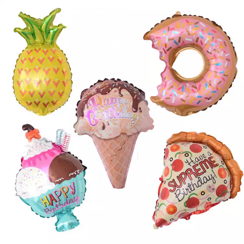 パイナップル・ドーナツ・アイスクリーム・サンデー・ピザの5つのSET。