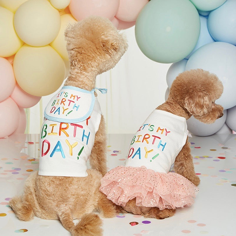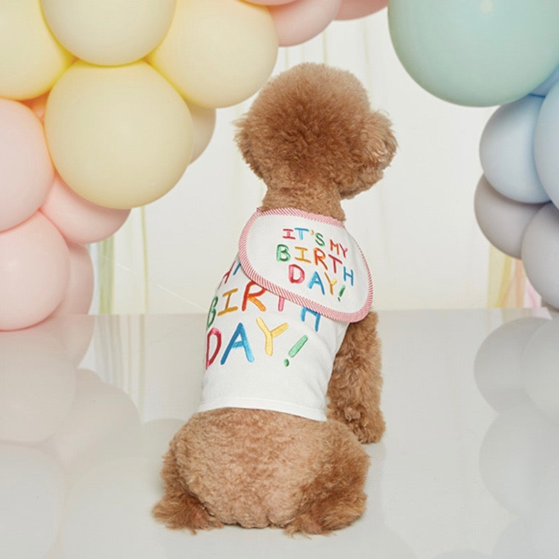 見た目も華やかなTシャツを着て、年に一度の愛犬の大切な誕生日を盛大にお祝いしましょう。