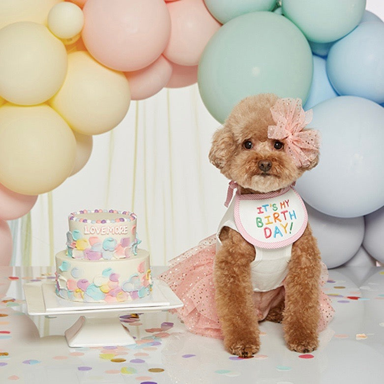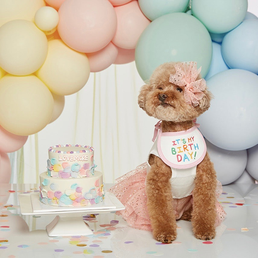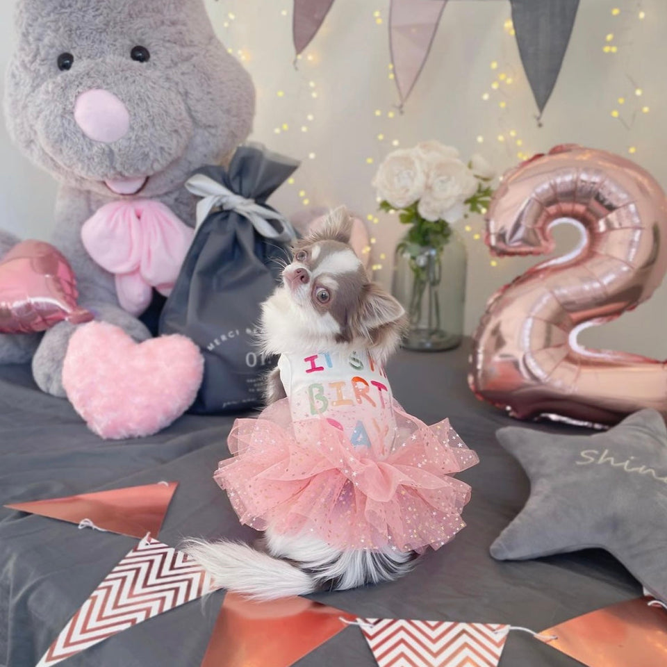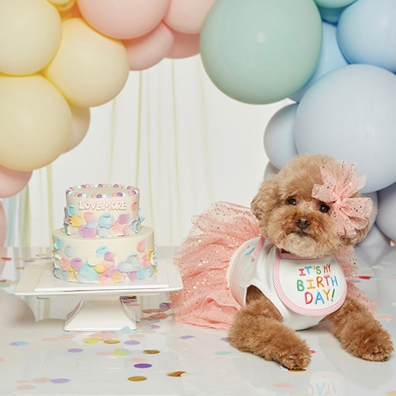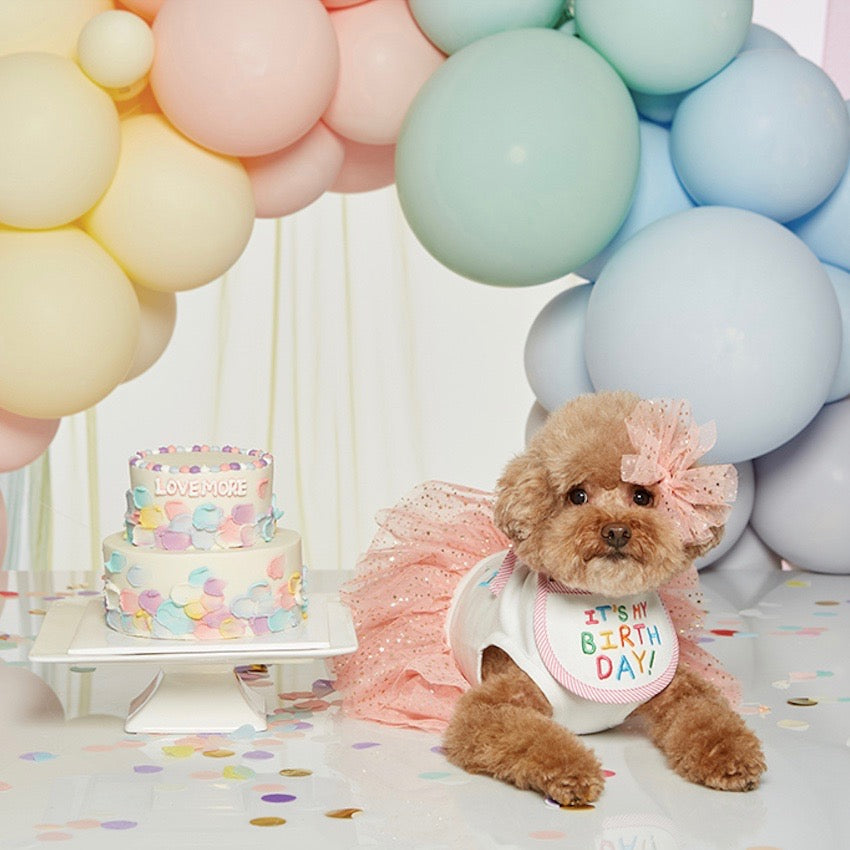 見た目も華やかなワンピースを着て、年に一度の愛犬の大切な誕生日を盛大にお祝いしましょう。