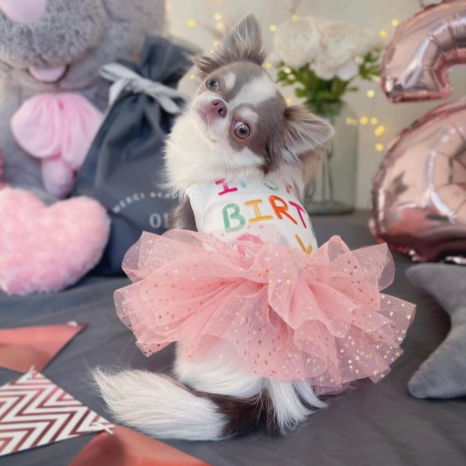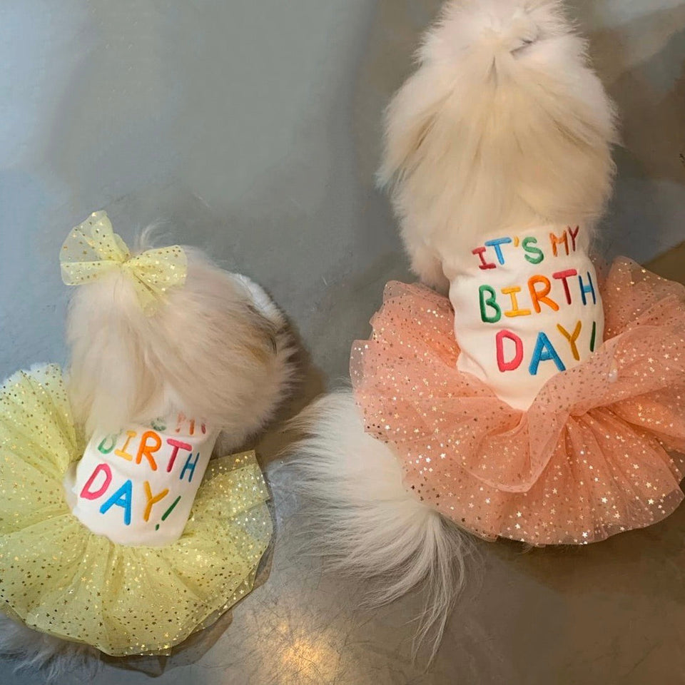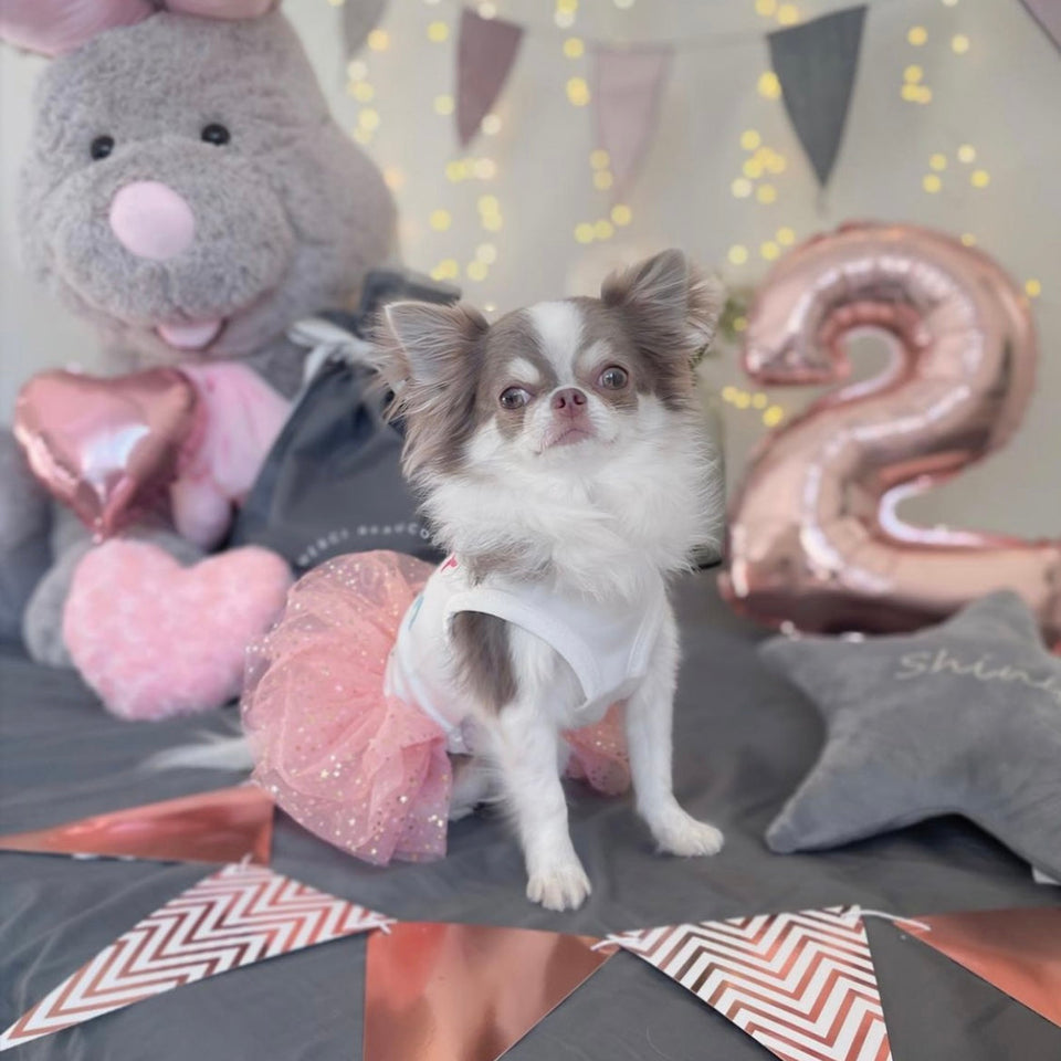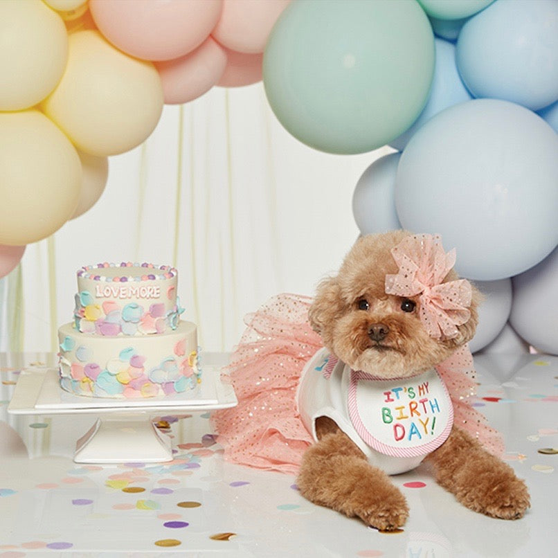 見た目も華やかなワンピースを着て、年に一度の愛犬の大切な誕生日を盛大にお祝いしましょう。