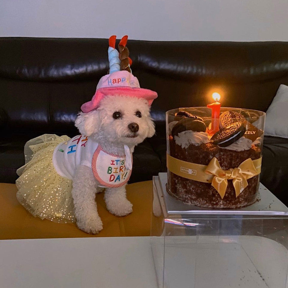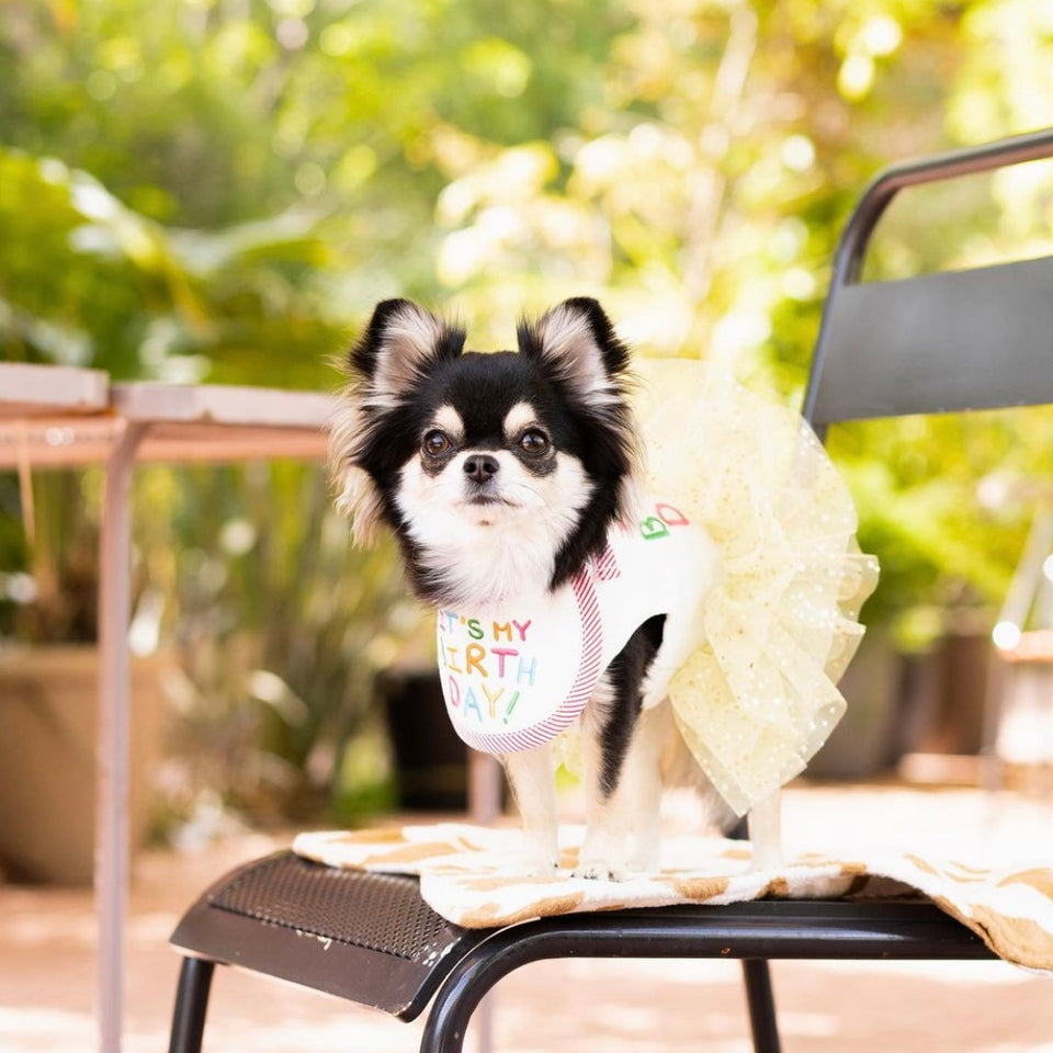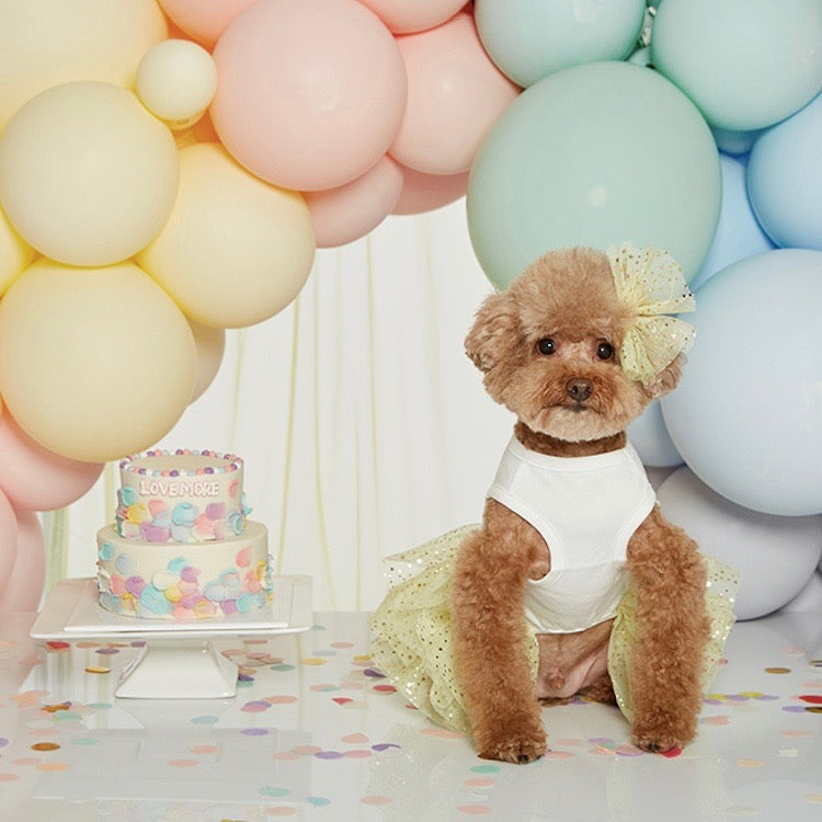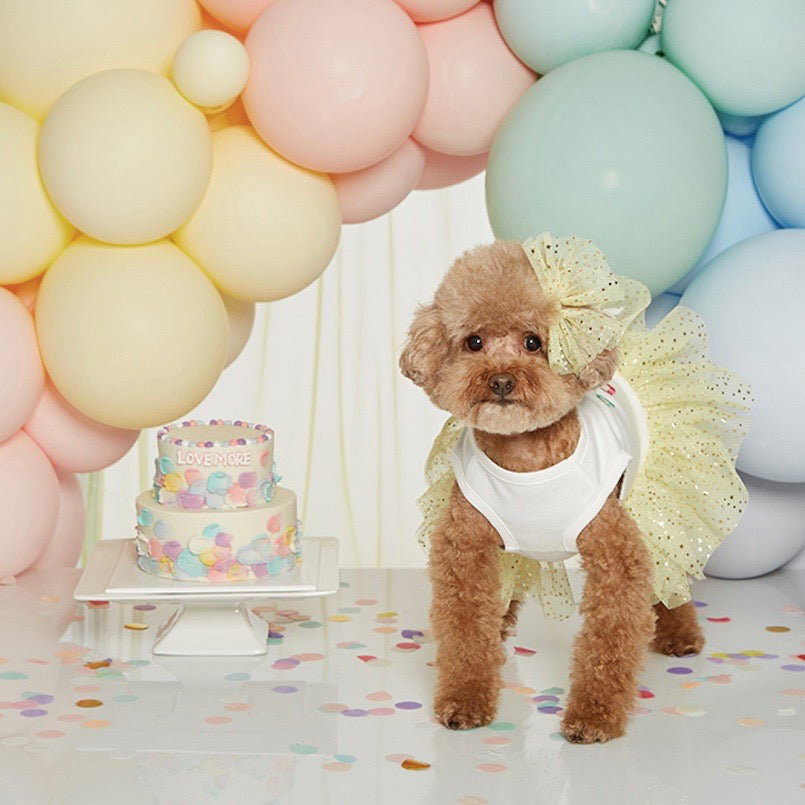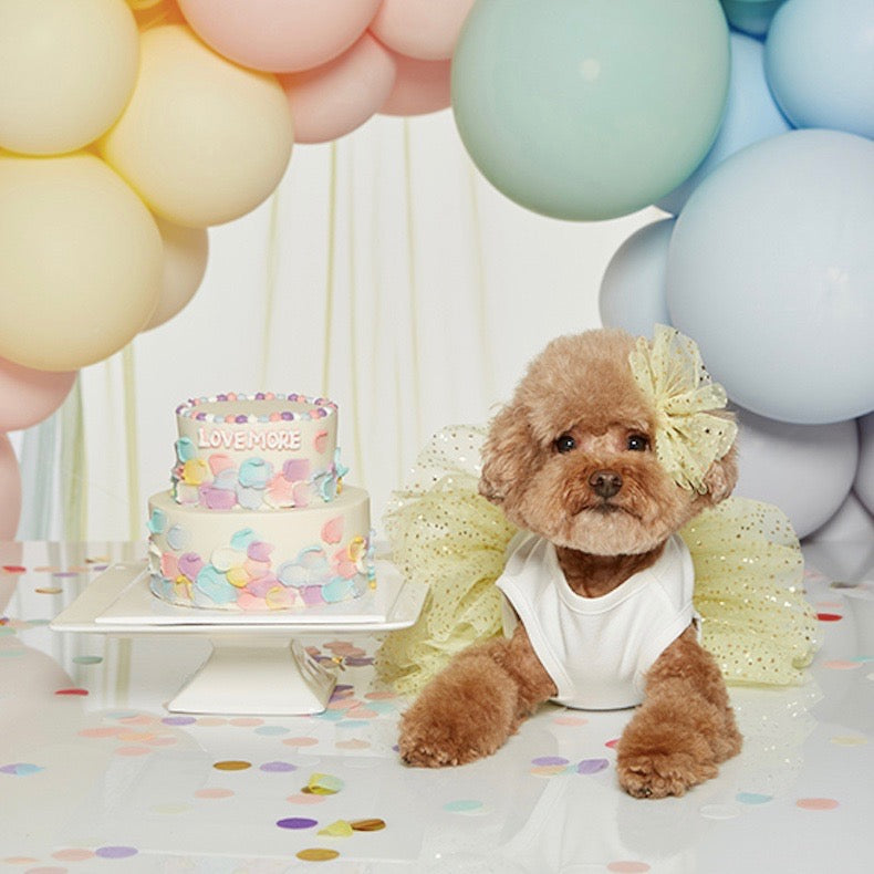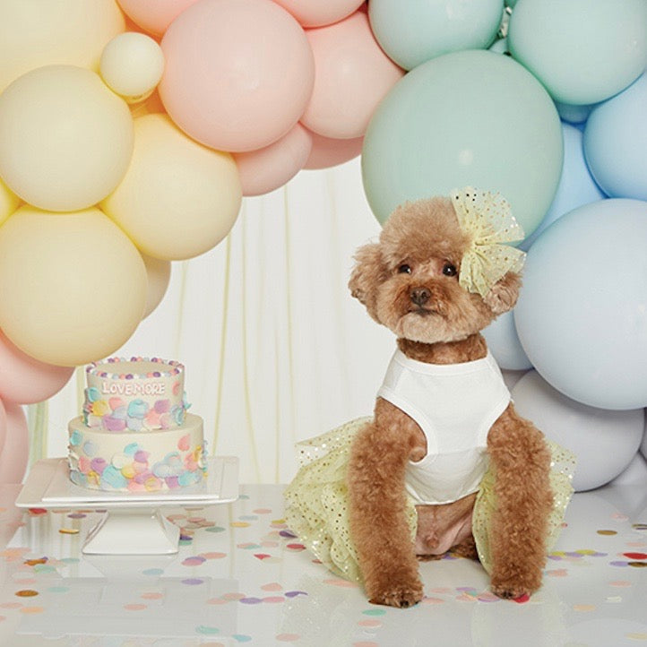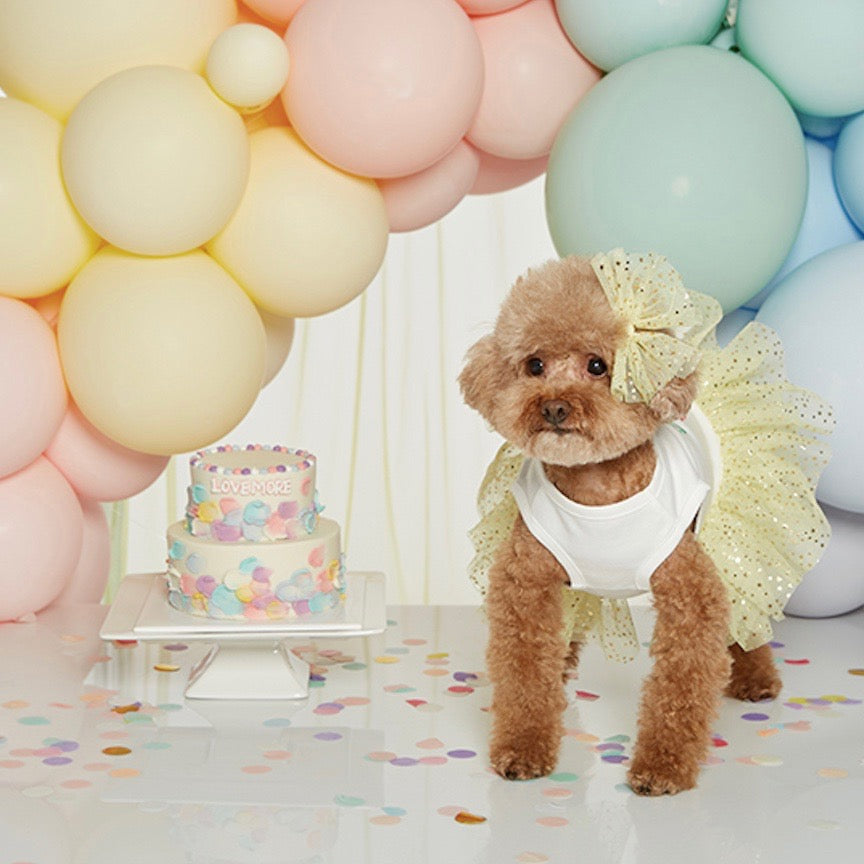 見た目も華やかなワンピースを着て、年に一度の愛犬の大切な誕生日を盛大にお祝いしましょう。