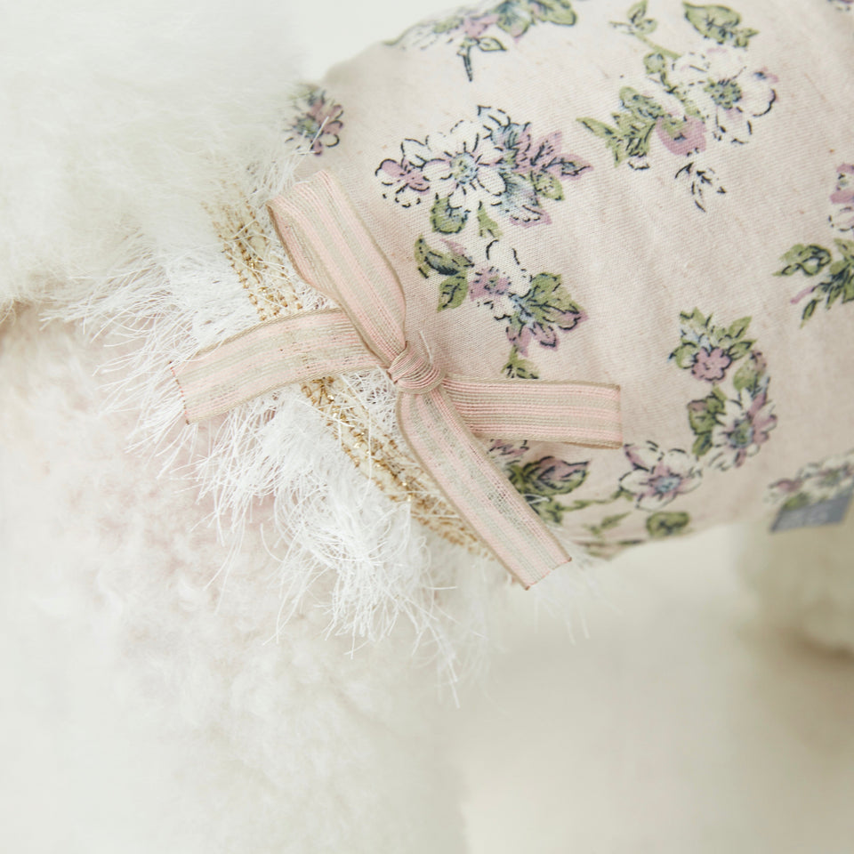 肌触りの良いコットン100%の生地に取り外し可能なリネンのリボンなどを足して見た目の涼しさや可愛らしさをプラスすることで、孔雀のような見た目にも涼しげな可愛らしいルックに♡