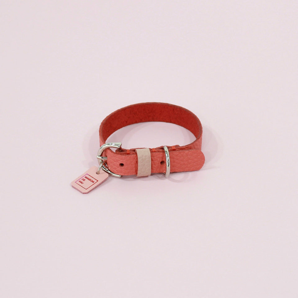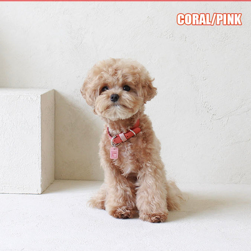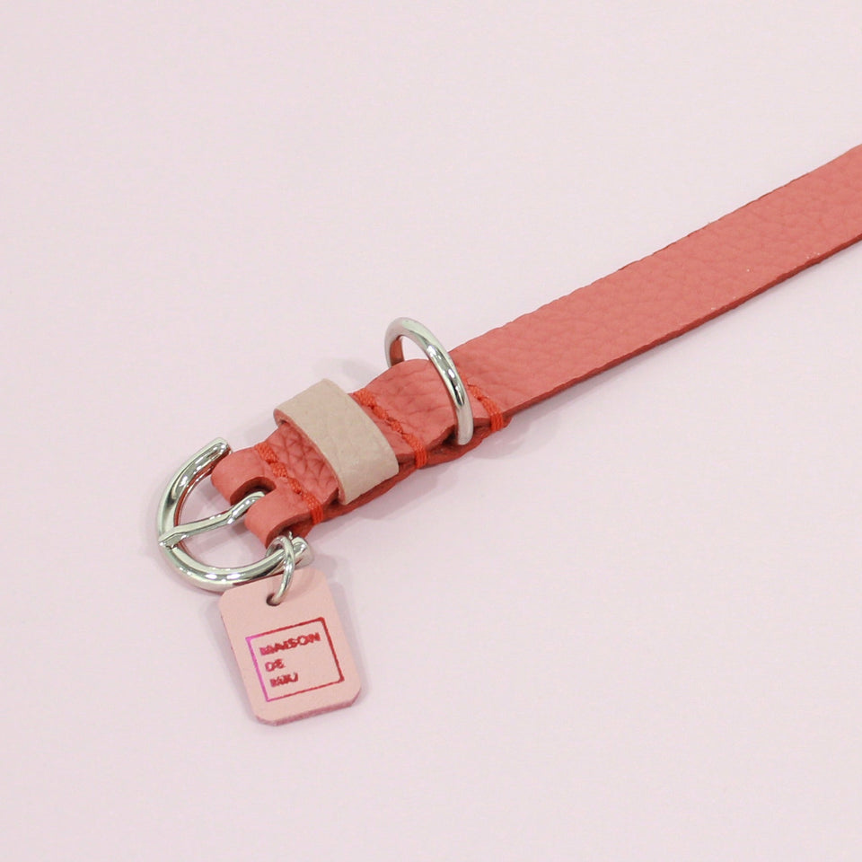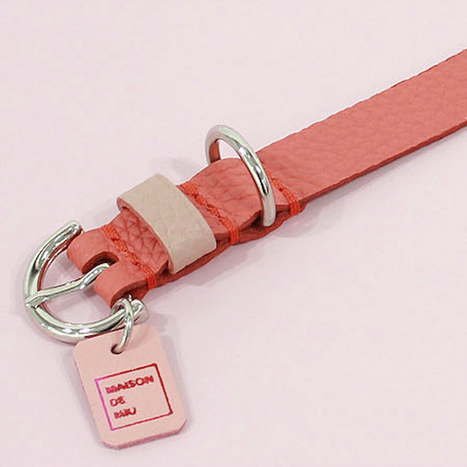 牛革100%コーラルベースの首輪にくすみピンクのループがワンポイントでアクセントになった高級感たっぷりのカラーセンス抜群なmaison de miuらしい首輪♡