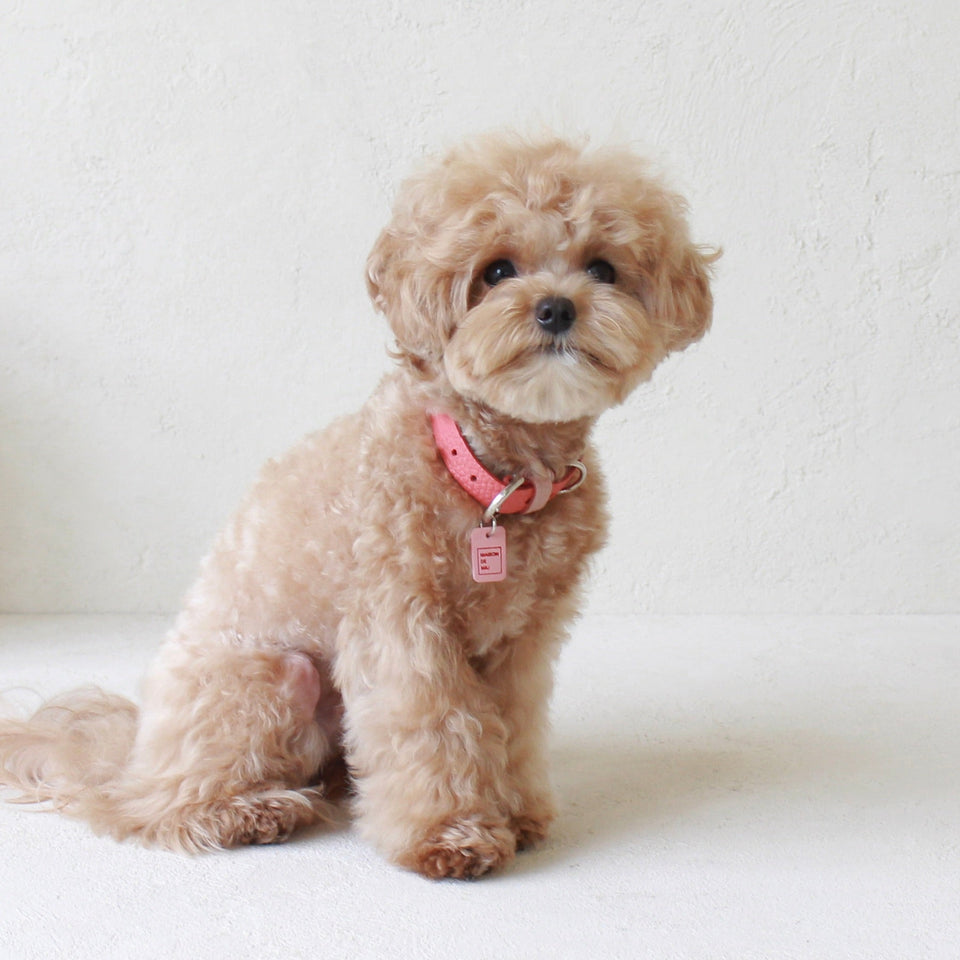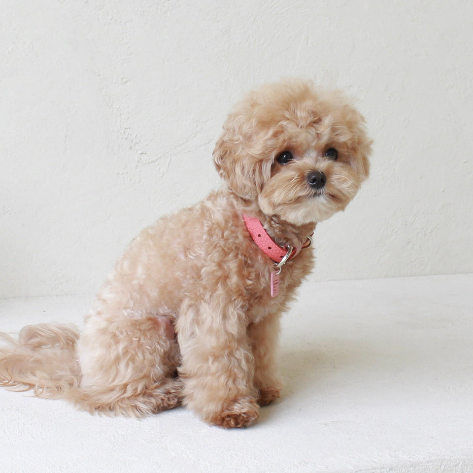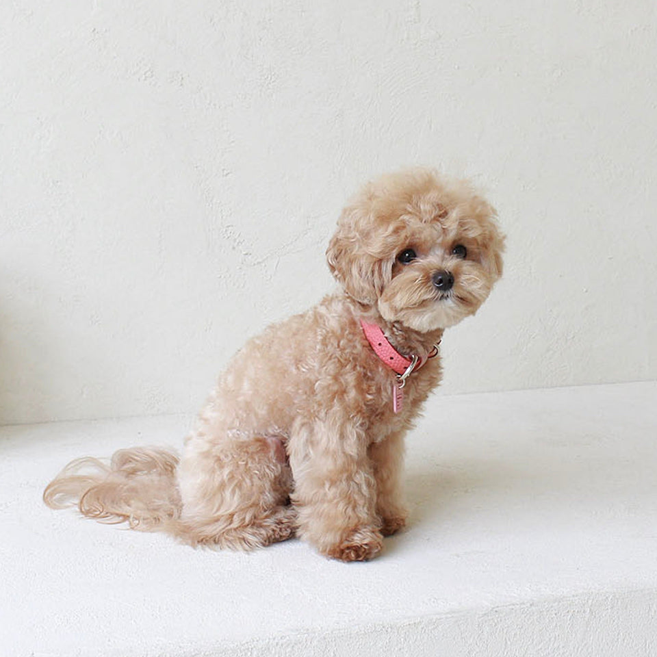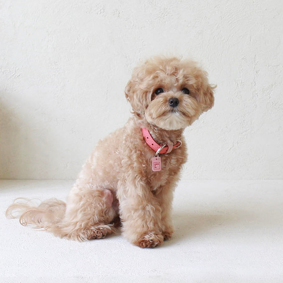 牛革100%コーラルベースの首輪にくすみピンクのループがワンポイントでアクセントになった高級感たっぷりのカラーセンス抜群なmaison de miuらしい首輪♡